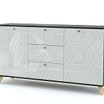 Комод Дания 4 BMS – это эффектная модель для современных интерьеров с элементами скандинавского стиля. Широкий низкий комод на высоких ножках отличается комбинированной конструкцией и поможет разместить большое количество вещей. Под просторной столешницей, на которой выигрышно смотрятся предметы декора, располагаются два распашных отделения с полками и ряд из трех выдвижных ящиков. Корпус темного оттенка дополняет глянцевый фасад с фрезерованным узором. Купить комод Дания 4 BMS с учетом оптимальных параметров вы сможете в нашем интернет-магазине.