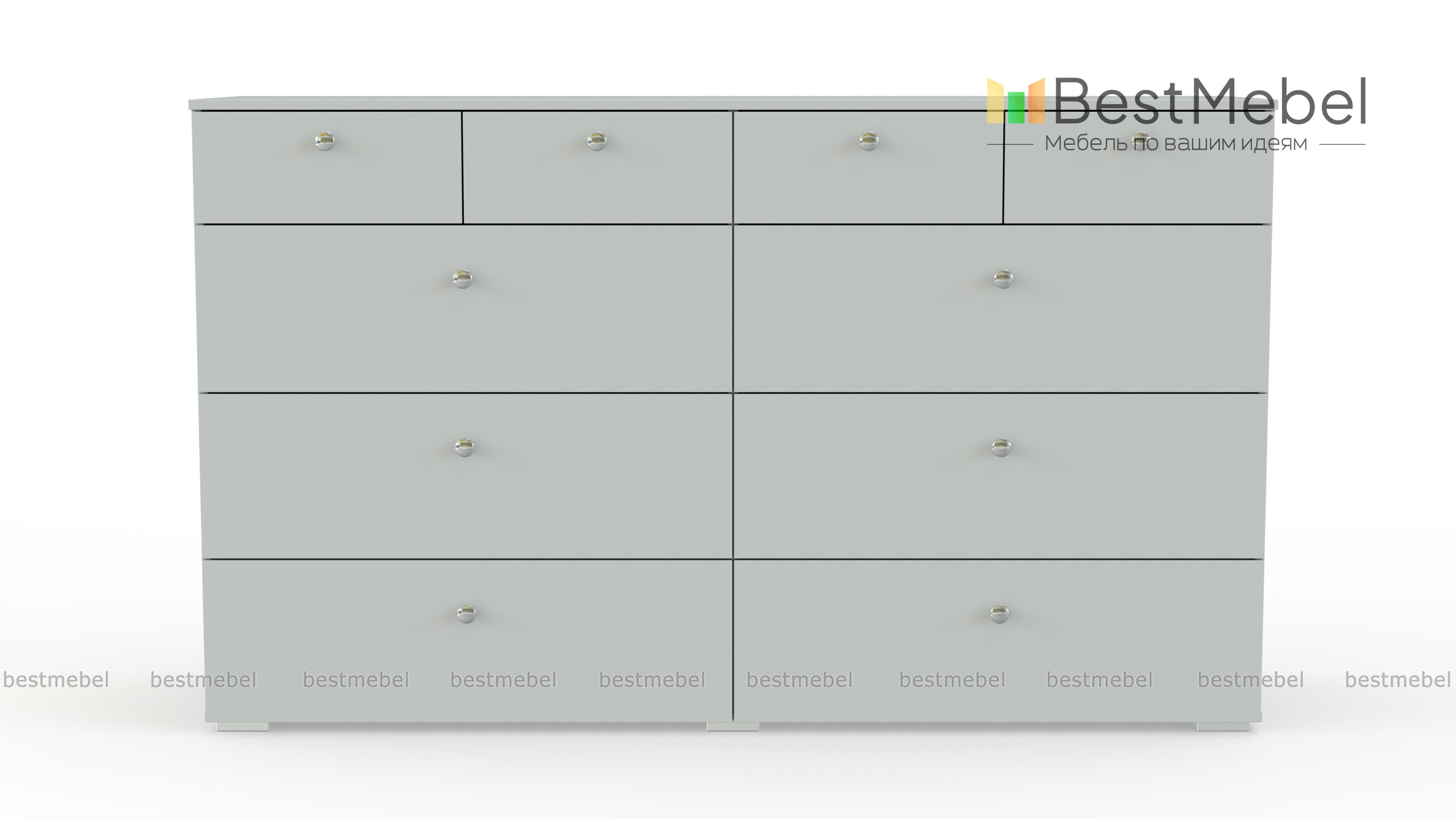 Комод Эдна 10 BMS поможет вам разместить как необходимые под рукой мелочи, так и постельное белье, одежду и аксессуары. Широкая модель с просторной столешницей оборудована четырьмя малыми выдвижными ящиками и шестью большими, оснащенными ручками-кнопками. Простой и функциональный дизайн в сочетании с исполнением в сером цвете делает модель универсальной для современных интерьеров. Купить комод Эдна 10 BMS приглашаем в наш интернет-магазин по доступной цене.