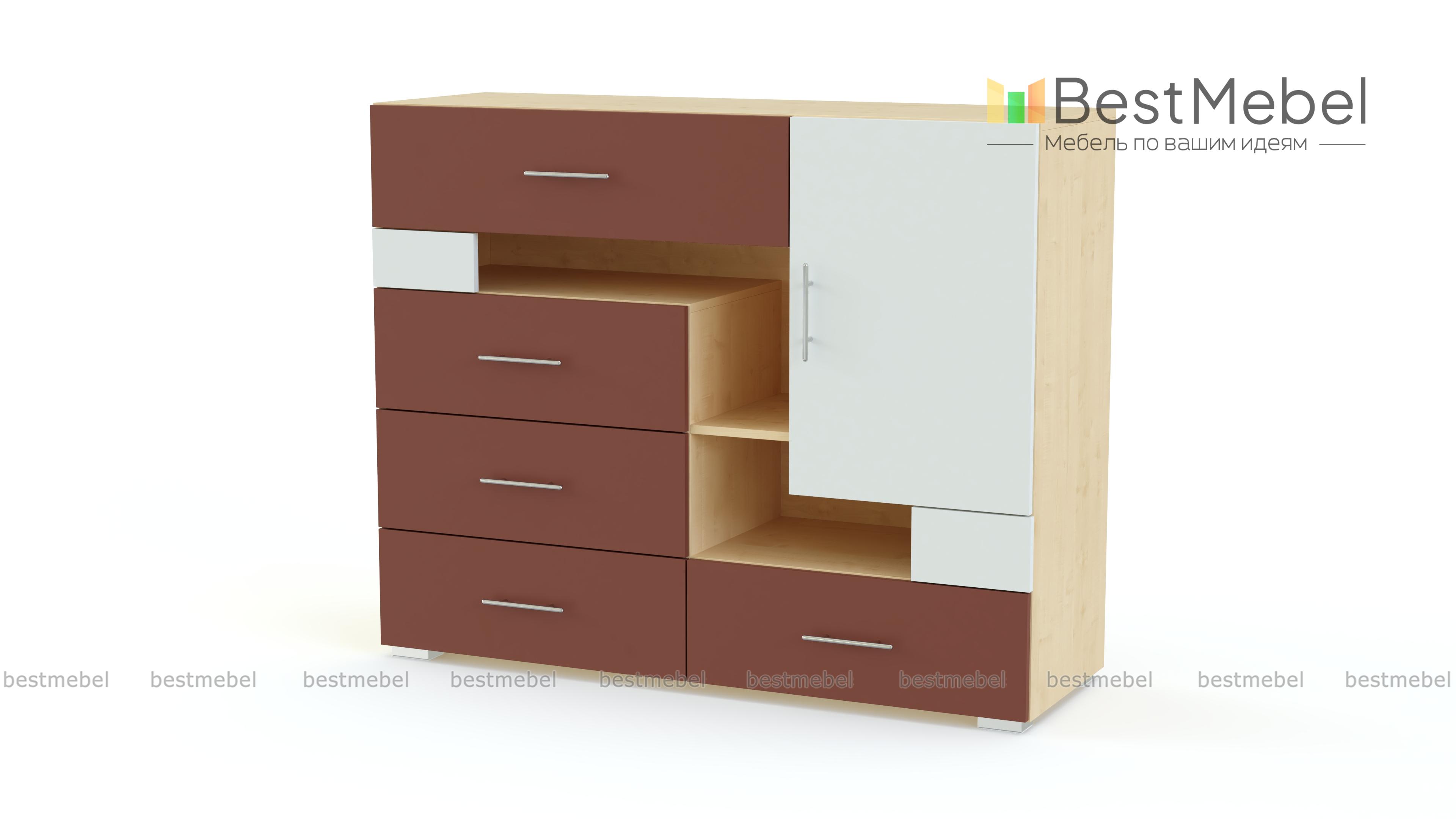 Комод Некст М BMS – отличный выбор для комнаты современного подростка. Экологичные материалы, креативный дизайн и высокая функциональность позволят комоду гармонично вписаться в интерьер и обеспечат долговечность и комфортное пользование. Модель выполняется в сочетании нейтральных тонов с яркими вставками на выбор и оборудована четырьмя выдвижными ящиками разных размеров, распашным отделением и асимметрично расположенными нишами. Купить комод Некст М BMS и оптимизировать хранение мелочей вам всегда поможет наш интернет-магазин.