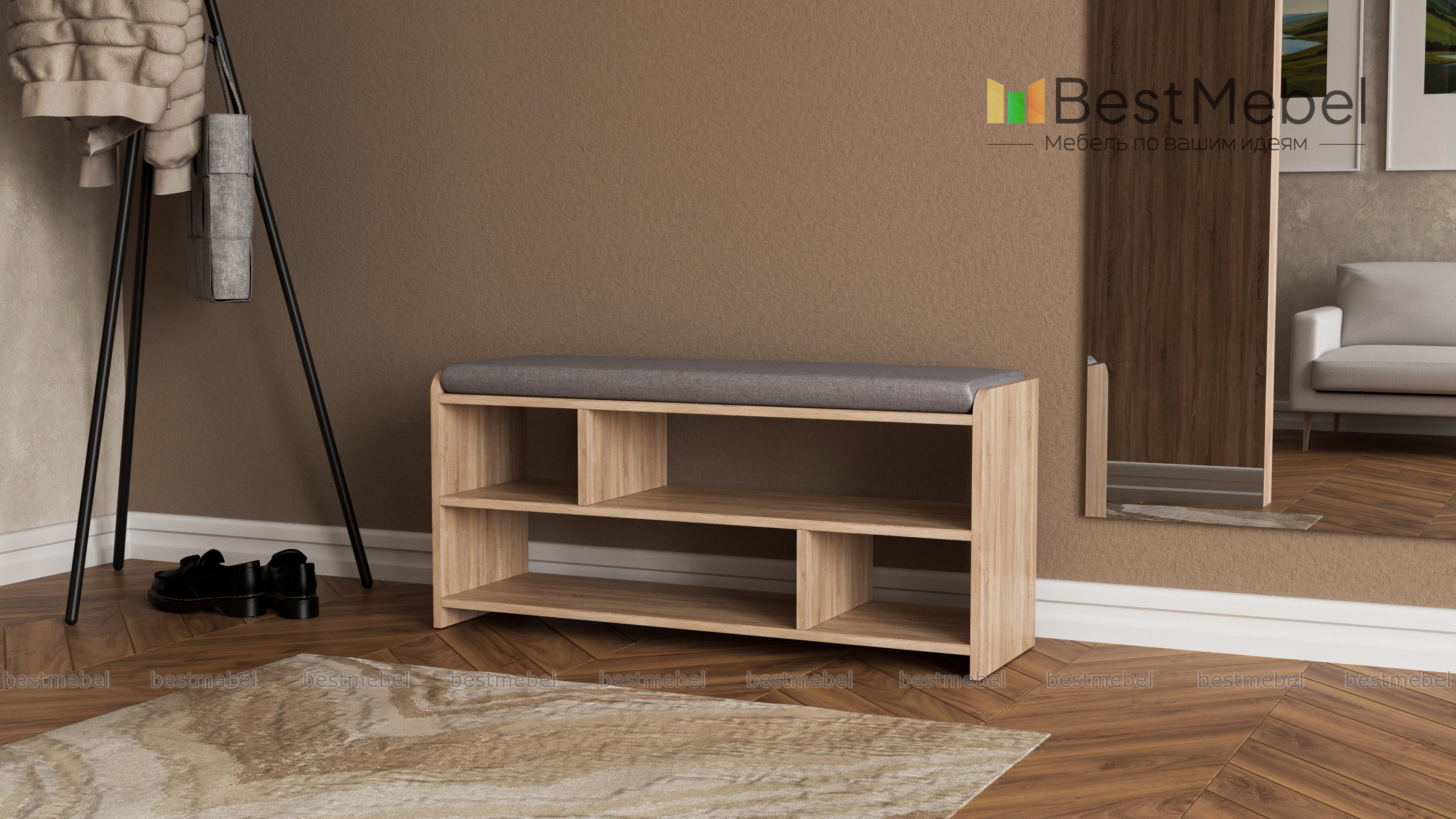 Обувница Йорк BMS – это практичная скамья для современной прихожей. Многофункциональная модель оборудована широким сиденьем в мягкой обивке, которое сделает процесс обувания максимально комфортным, и открытыми полками для хранения повседневной обуви и уходовых средств. Выполненная в нейтральных древесных тонах, обувница безопасно скруглена по углам, обивка из износостойкого материала надолго сохранит эстетичный вид. Купить обувницу Йорк BMS вы сможете в нашем интернет-магазине, подобрав оптимальное цветовое решение.
