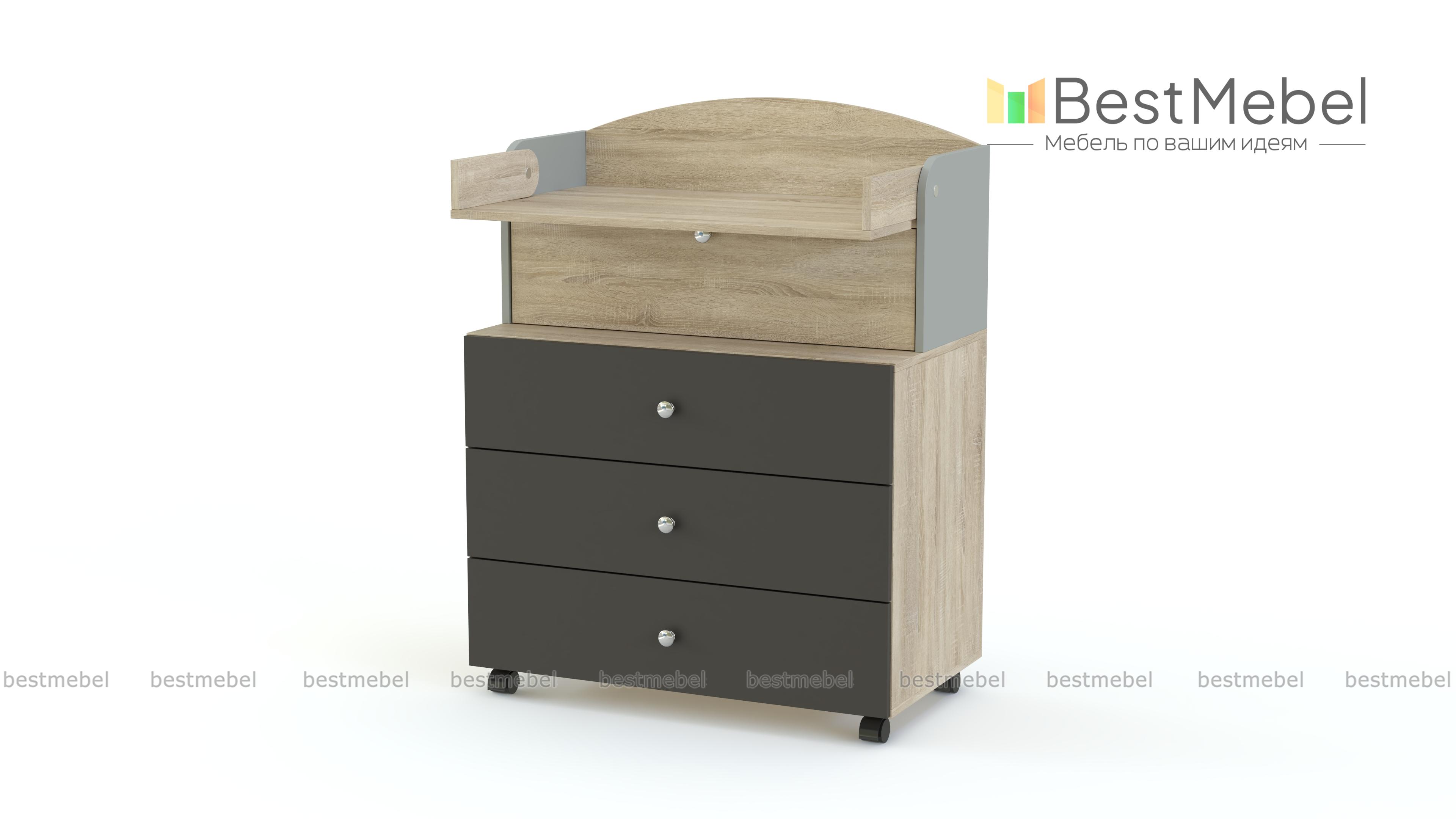 Пеленальный комод Анкор 6 BMS со складным столиком, трансформирующимся в полку, может использоваться в детской, когда малыш подрастет. Модель оборудована тремя выдвижными ящиками для хранения детских вещей, а отделение с откидной дверцей позволяет держать под рукой пеленки и средства гигиены. Мобильный благодаря колесикам, комод легко перемещается для уборки или перестановки. Купить пеленальный комод Анкор 6 BMS и рационально организовать пространство вам всегда поможет наш интернет-магазин.