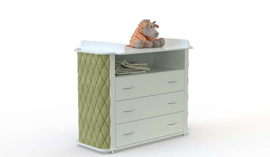 Пеленальный комод Антик 2 BMS выполнен из качественной ламинированной плиты и имеет скругленные мягкие боковины с ромбовидной прострочкой. Модель без острых углов станет практичным дополнением и украшением детской. Для ухода за малышом предусмотрен съемный пеленальный столик с бортиками по бокам, а удобное хранение средствам гигиены, пеленкам и прочим вещам обеспечат просторная ниша и три выдвижных ящика. Купить пеленальный комод Антик 2 BMS приглашаем на сайт нашего интернет-магазина.
