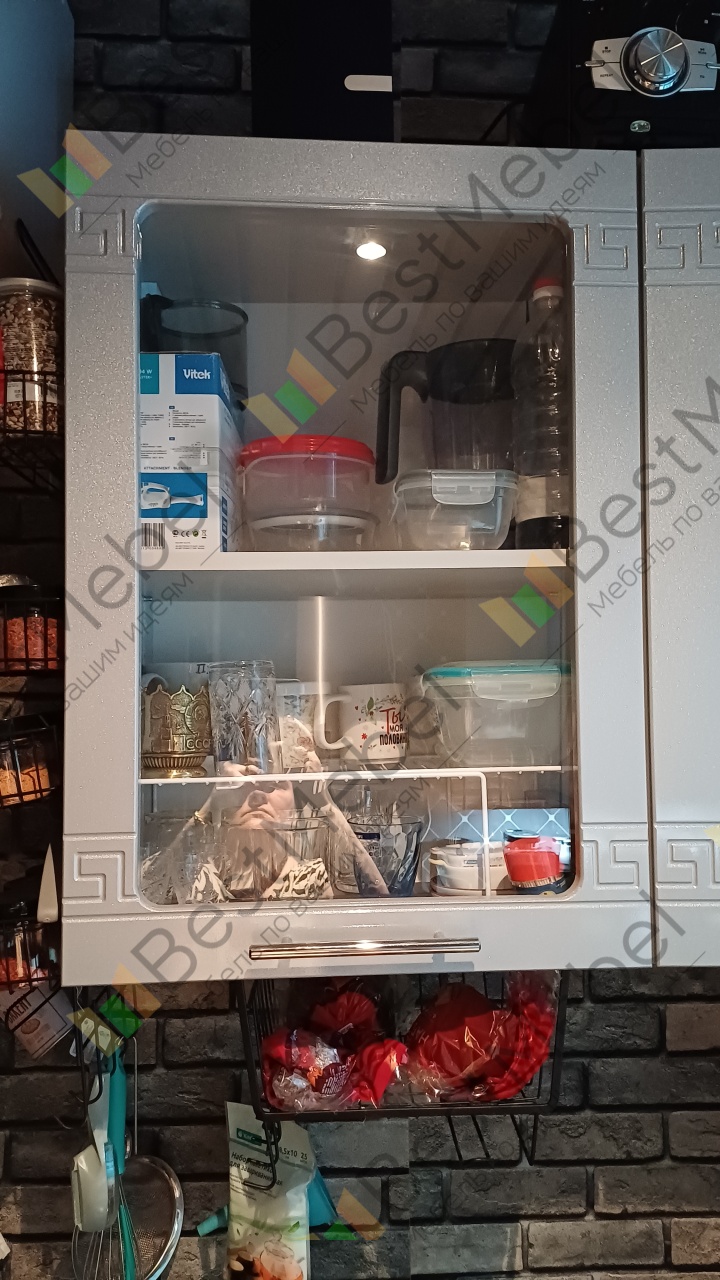 Шкаф навесной со стеклом 1 дверь Греция BMS – компактная модель, которая без труда впишется даже в малогабаритные кухни. Распашной шкафчик с застекленной дверцей предназначен для хранения посуды, хрупких предметов, чая и кофе. Матовый фасад с орнаментом и изящной ручкой выполнен в едином для всей модульной серии стиле и станет гармоничным дополнением комплекта. Купить шкаф навесной со стеклом 1 дверь Греция BMS для визуально легкого и практичного интерьера приглашаем недорого в наш интернет-магазин.