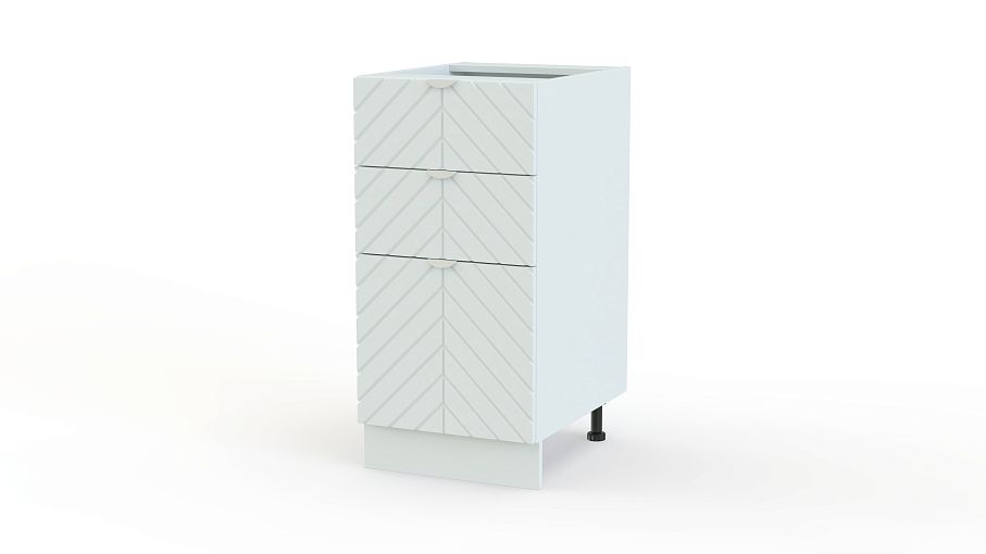 Шкаф нижний с 3-мя ящиками Анаис BMS не даст потеряться кухонным мелочам и поможет разместить более габаритные вещи. Два малых выдвижных ящика сверху дополнены одним большим, расположенным в нижней части шкафа. Фрезеровка «ёлочкой» на светлом фасаде из МДФ и полукруглые ручки в тон придают этой модели особенно стильный вид. Купить шкаф нижний с 3-мя ящиками Анаис BMS с выбором нужных размеров, цвета и фурнитуры вы сможете на сайте нашего интернет-магазина.