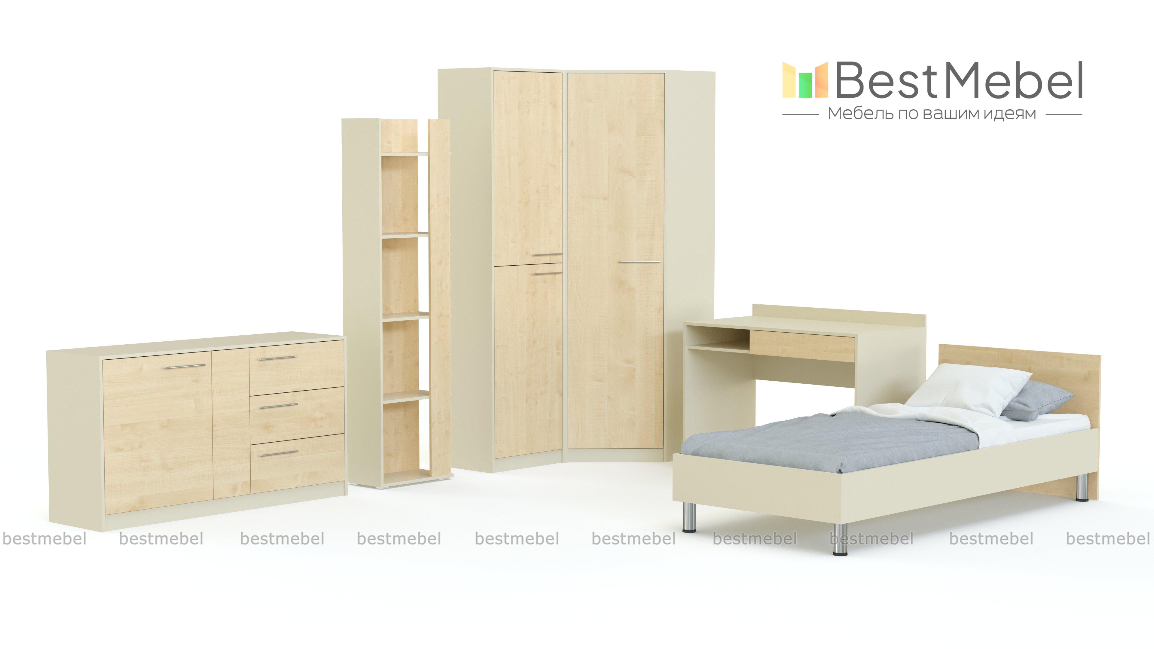 Молодежная модульная мебель МДК 4.11 BMS выполнена в гармоничном сочетании светлых и темных оттенков с имитацией текстуры дерева. Стильный модульный комплект легко впишется в большинство современных интерьеров и позволит организовать комфортное пространство для учебы и досуга. В набор входят вместительный комод с просторной столешницей, оригинальный стеллаж, угловая композиция из бельевого и платяного шкафов, письменный стол и кровать с высокими ножками. Купить молодежную модульную мебель МДК 4.11 BMS по отличной цене вы сможете в нашем интернет-магазине.