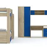 Молодежная Сити BMS поможет сделать комнату школьника не только красивой, но и удобной. В комплект входит несколько функциональных модулей – кровать с выдвижными ящиками для белья, двухдверный шкаф для одежды, шкаф-пенал, настенная полка и письменный стол с тумбой и полкой для клавиатуры. Корпус светлых тонов под массив дерева дополняют цветные фактурные фасады с оригинальной фурнитурой. Купить молодежную Сити BMS, подобрав все необходимые параметры, вы сможете в нашем интернет-магазине.