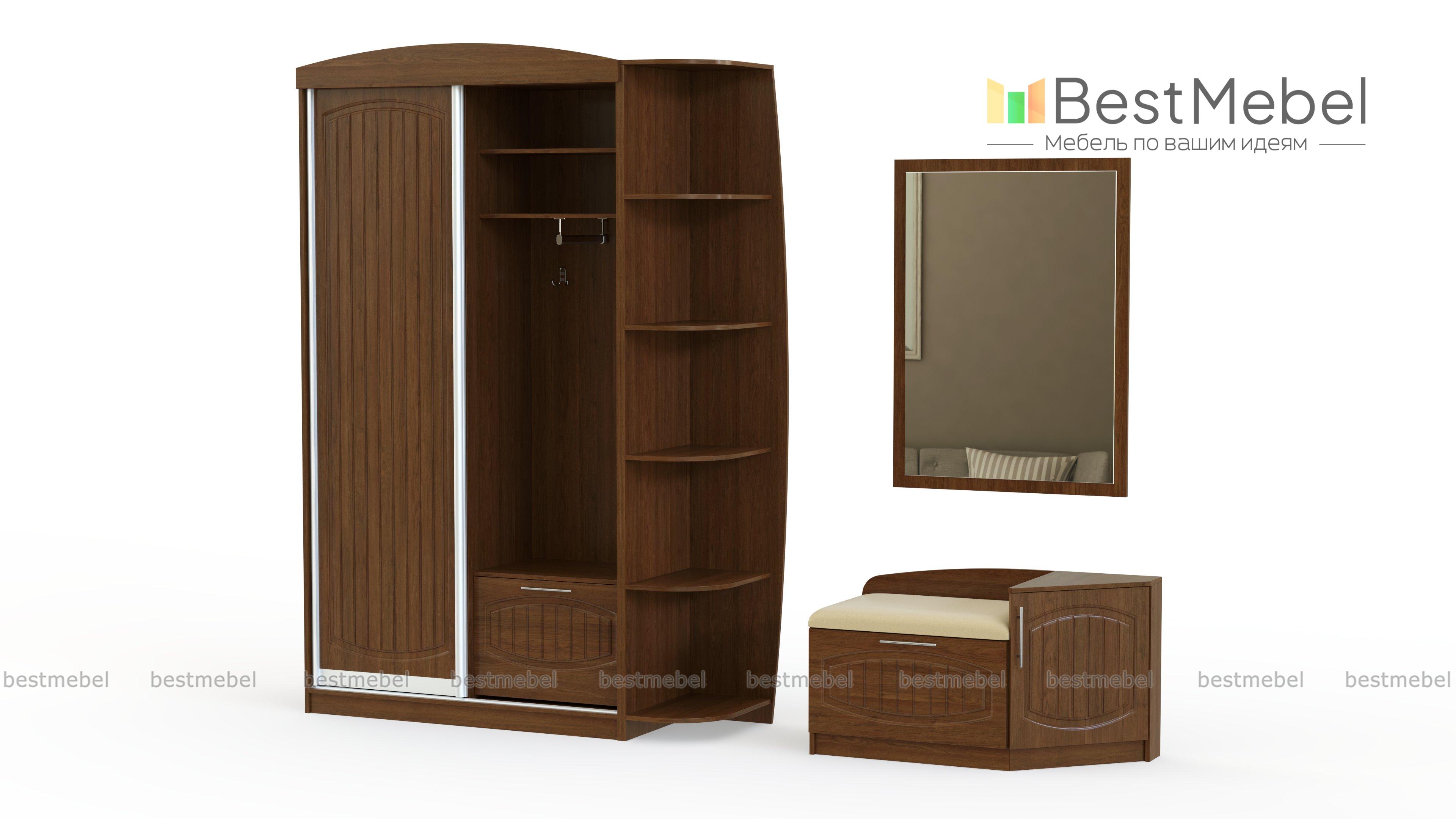 Прихожая ЭТ-3.991 BMS – модульный комплект, который сделает входную зону максимально комфортной. Композиция состоит из трех функциональных элементов – секции с раздвижным отделением, открытой вешалкой, тумбой и торцевым стеллажом, навесного зеркала и обувницы с мягким сиденьем в тканевой обивке. Продуманная комбинация разноплановых секций позволит компактно разместить все необходимое – от верхней одежды до интерьерных украшений и мелочей. Купить прихожую ЭТ-3.991 BMS с уютными фрезерованными фасадами приглашаем в наш интернет-магазин.