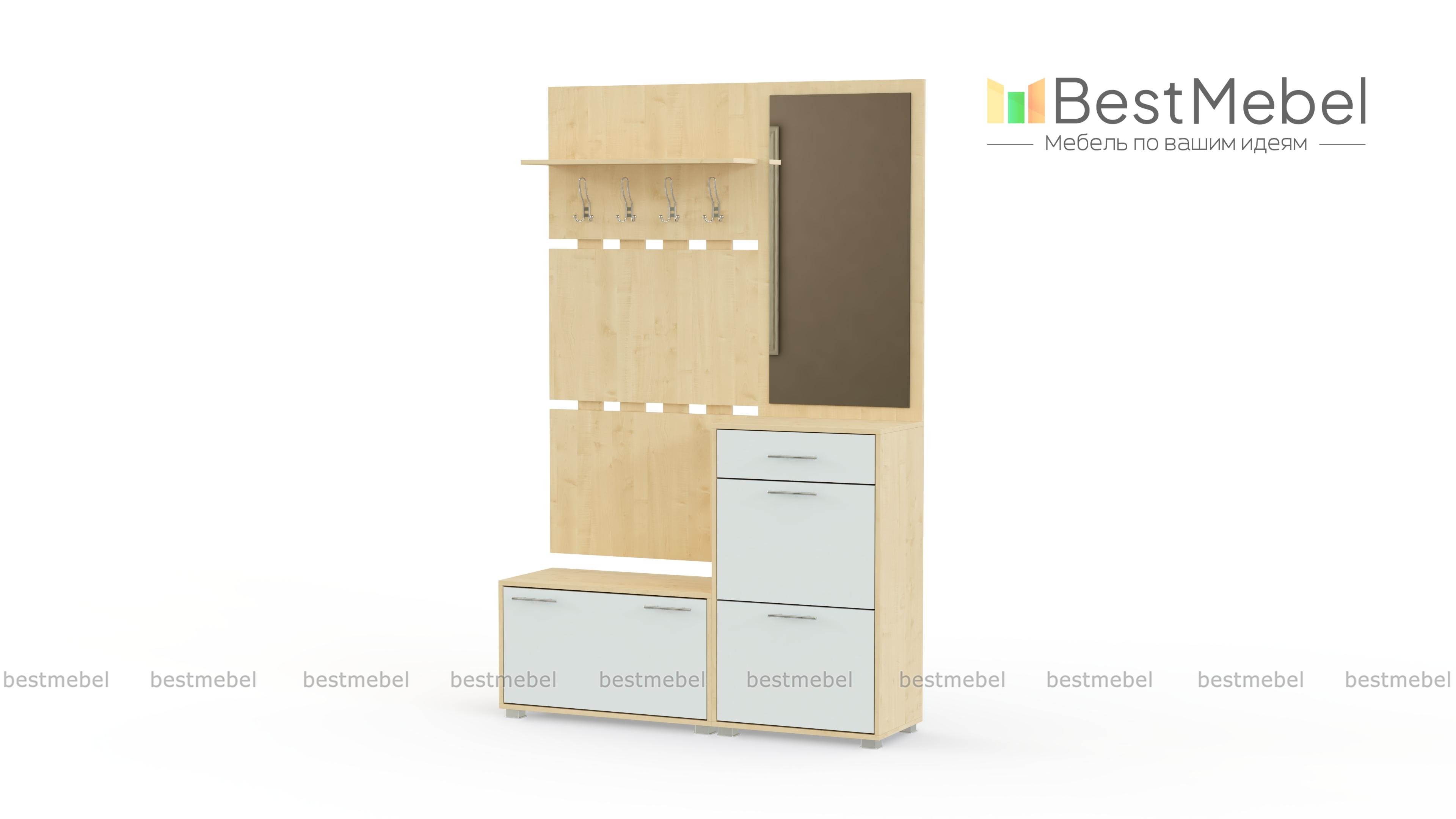 Прихожая Моренго BMS - довольно широкая и вместительная модель для современных интерьеров. С помощью нашей палитры Вы можете заказать изделие не только в однотонном исполнении, но и в комбинированном варианте. Прихожая состоит из основных элементов: 2-х обувных тумб с удобными дверцами, на них имеются специальные кармашки, чтобы хранить обувь аккуратно и все пары были на виду. Кроме них имеется 2 панели: с зеркалом и вешалками, над рядом крючков предусмотрена полка для головных уборов. Купить прихожую Моренго BMS по низкой цене можно на нашем официальном сайте.