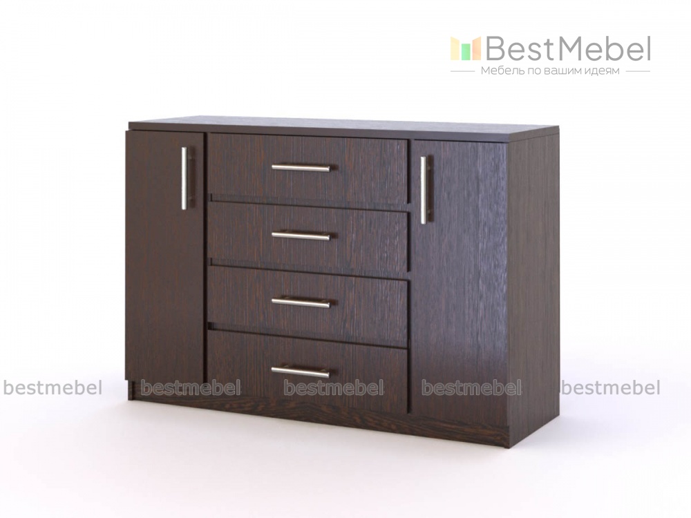 Комод Марк-2 BMS отличается элегантным современным дизайном и гармонично впишется в интерьер спален и гостиных. Комбинированная модель оборудована широкой столешницей, на которой смогут разместиться предметы декора или телевизор, четырьмя выдвижными бельевыми ящиками с наружными фасадами и симметрично расположенными распашными отделениями с полками. Несколько вариантов цветовых решений помогут вам сделать правильный выбор. На шариковых направляющих.