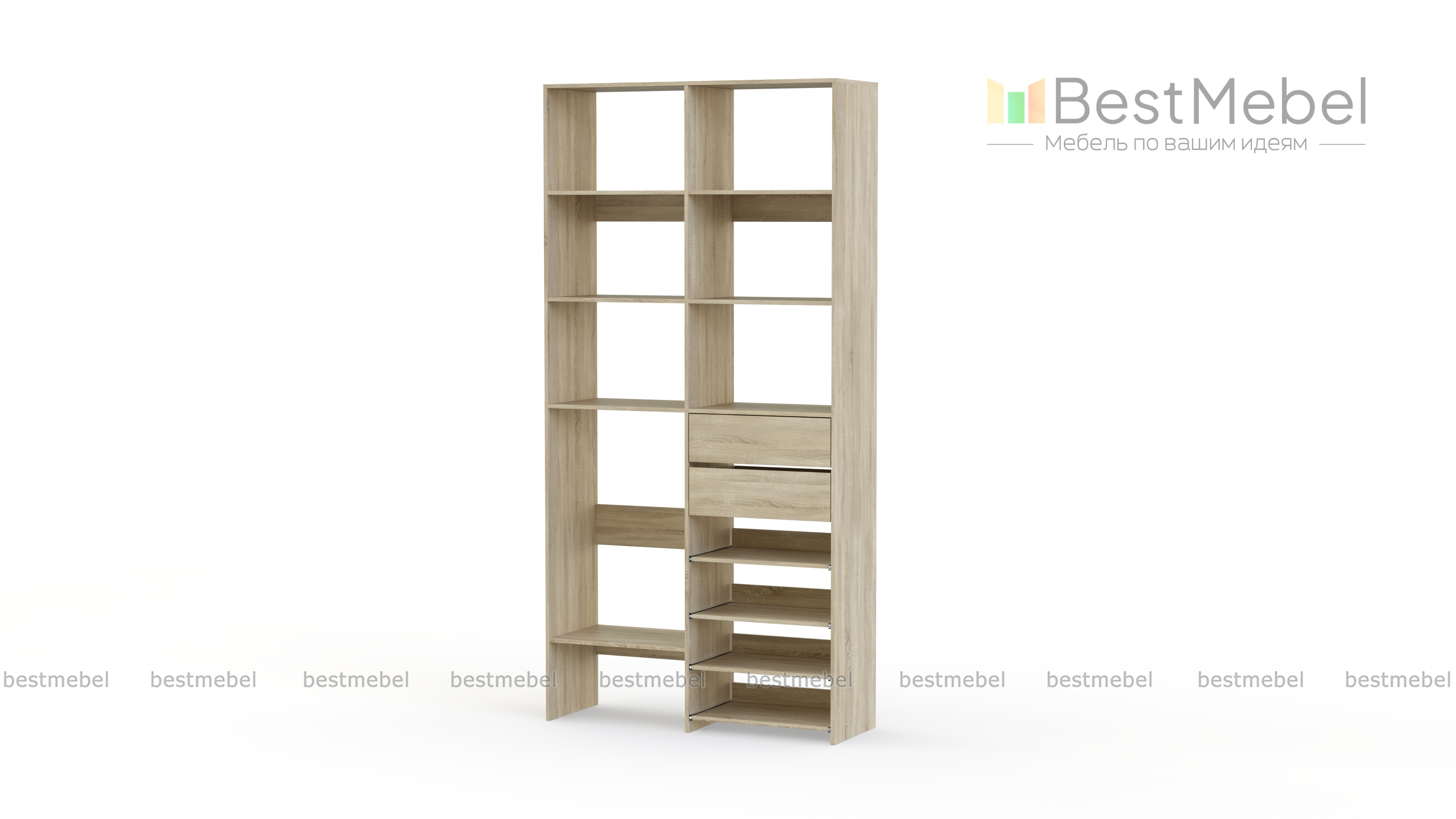 Стеллаж для одежды Мирта 86 BMS поможет вам легко избавиться от беспорядка. Секции разных размеров, два выдвижных ящика и четыре полки на направляющих прекрасно подойдут для хранения сложенной одежды, мелкого трикотажа, корзин и коробок с вещами. Благодаря скромным габаритам стеллаж легко поставить в нишу, разместить в маленькой прихожей или гардеробной. Купить стеллаж для одежды Мирта 86 BMS приглашаем в наш интернет-магазин.