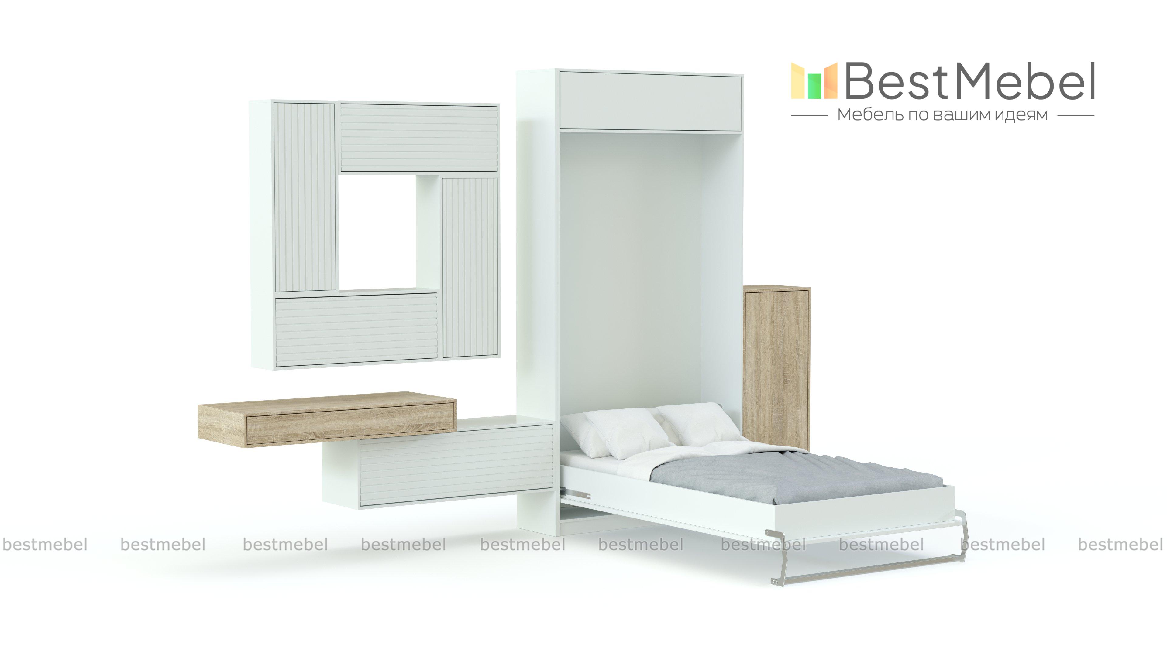 Шкаф-кровать трансформер Форма 128 BMS отличается эффектным и функциональным дизайном в стиле минимализм. Композиция 2 в 1 объединила удобную систему хранения из навесных модулей и шкаф с антресолью и откидной кроватью, замаскированной под дверцы. Стильную геометрию форм подчеркивает цветовое решение – древесные тона и белоснежный глянец с волнообразной 3D фрезеровкой. Купить шкаф-кровать трансформер Форма 128 BMS и значительно сэкономить пространство, не экономя на комфорте, вам поможет наш интернет-магазин.