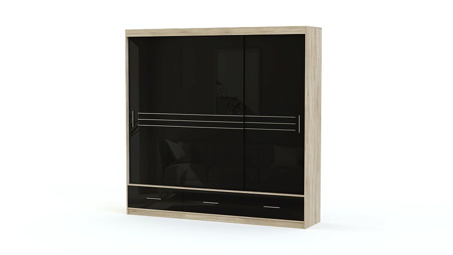 Элегантный и функциональный шкаф-купе для спальни, прихожей или гостиной. Глянцевая поверхность добавляет изделию роскоши. На нашем сайте можно выбрать цвет фасада из классических контрастных оттенков и оснастить его зеркалами.