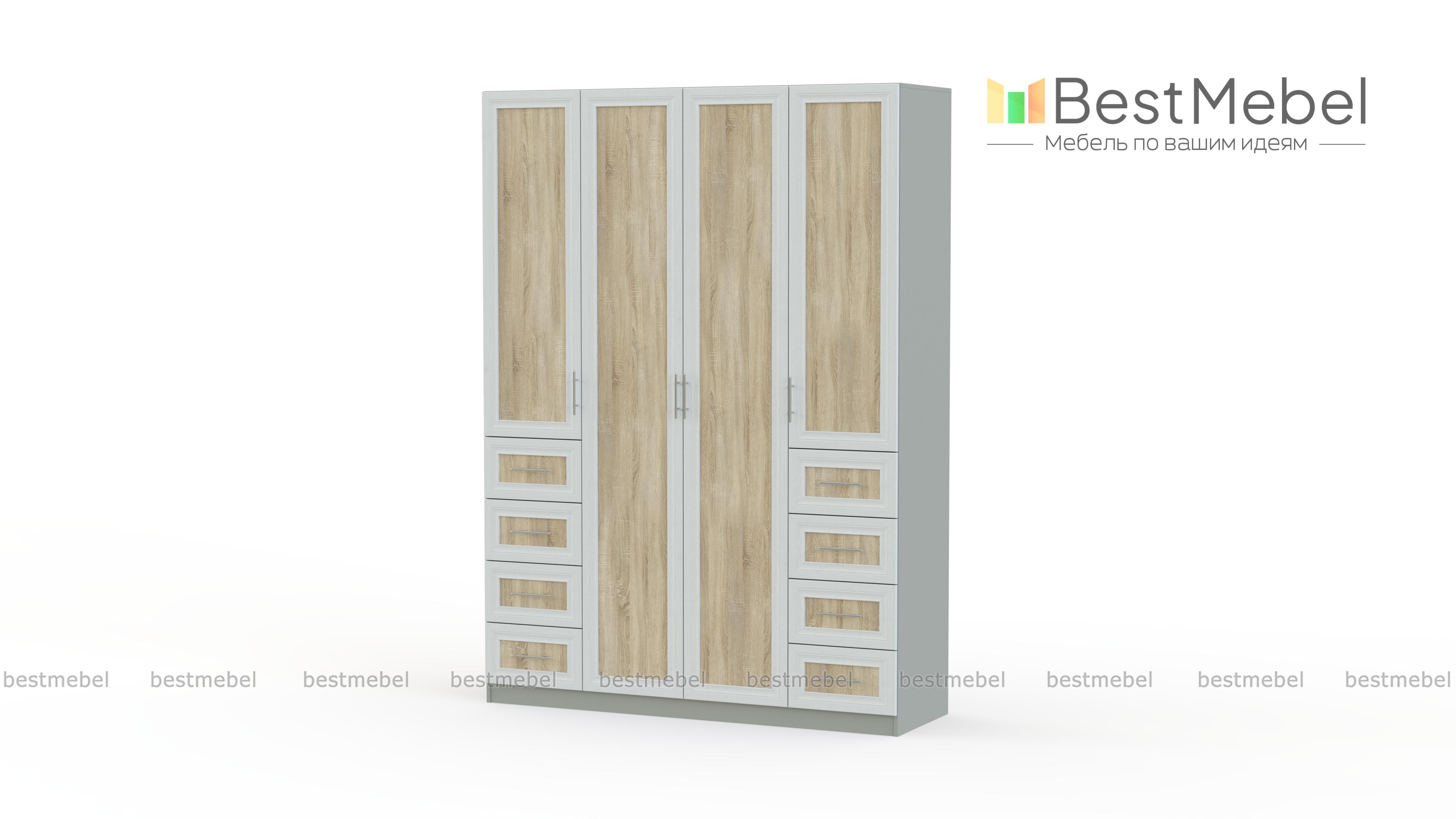 Распашной шкаф Крона 20 BMS – крупногабаритная модель из популярной серии, которую отличает надежность и гармоничное сочетание современных и классических тенденций. Вместительный шкаф с рамочными фасадами выполнен в контрастных оттенках нейтральной гаммы и идеально подходит для домашнего интерьера. Внутреннее наполнение из просторного платяного отделения со штангой и двух бельевых секций дополнено двумя рядами выдвижных ящиков для мелочей. Купить распашной шкаф Крона 20 BMS вы сможете в нашем интернет-магазине, подобрав нужные параметры.