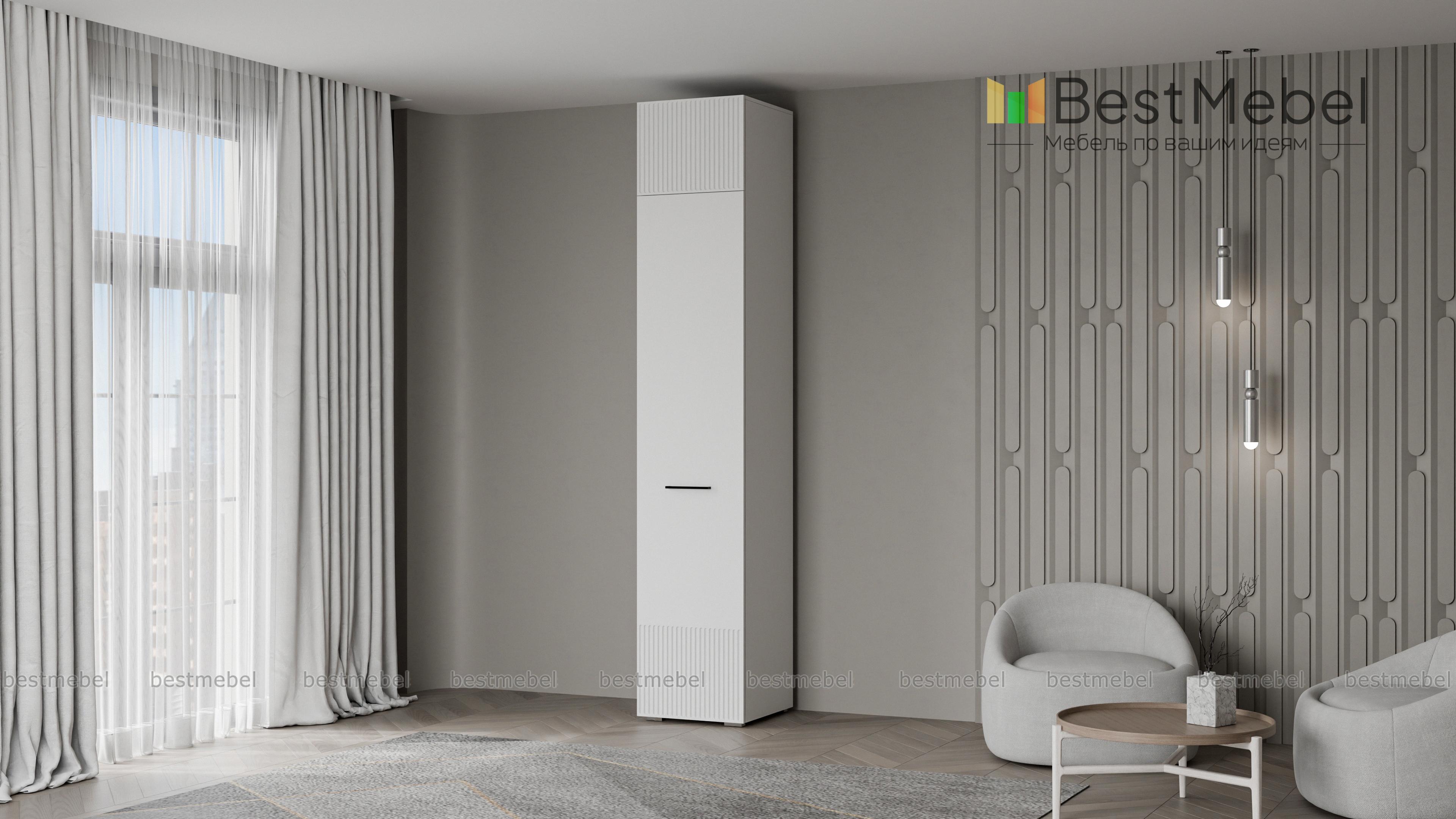 Шкаф распашной Декарт 7 BMS с одной дверцей и антресолью подходит для самых разных помещений. Высокий узкий шкаф с простым и выразительным благодаря фрезеровке дизайном оснащен необходимой для размещения вешалок с одеждой перекладиной и полочкой. Дополнительный отсек сверху значительно увеличивает пространство для хранения. Купить шкаф распашной Декарт 7 BMS вы сможете недорого в нашем интернет-магазине, подобрав подходящие именно вам цвета и размеры.