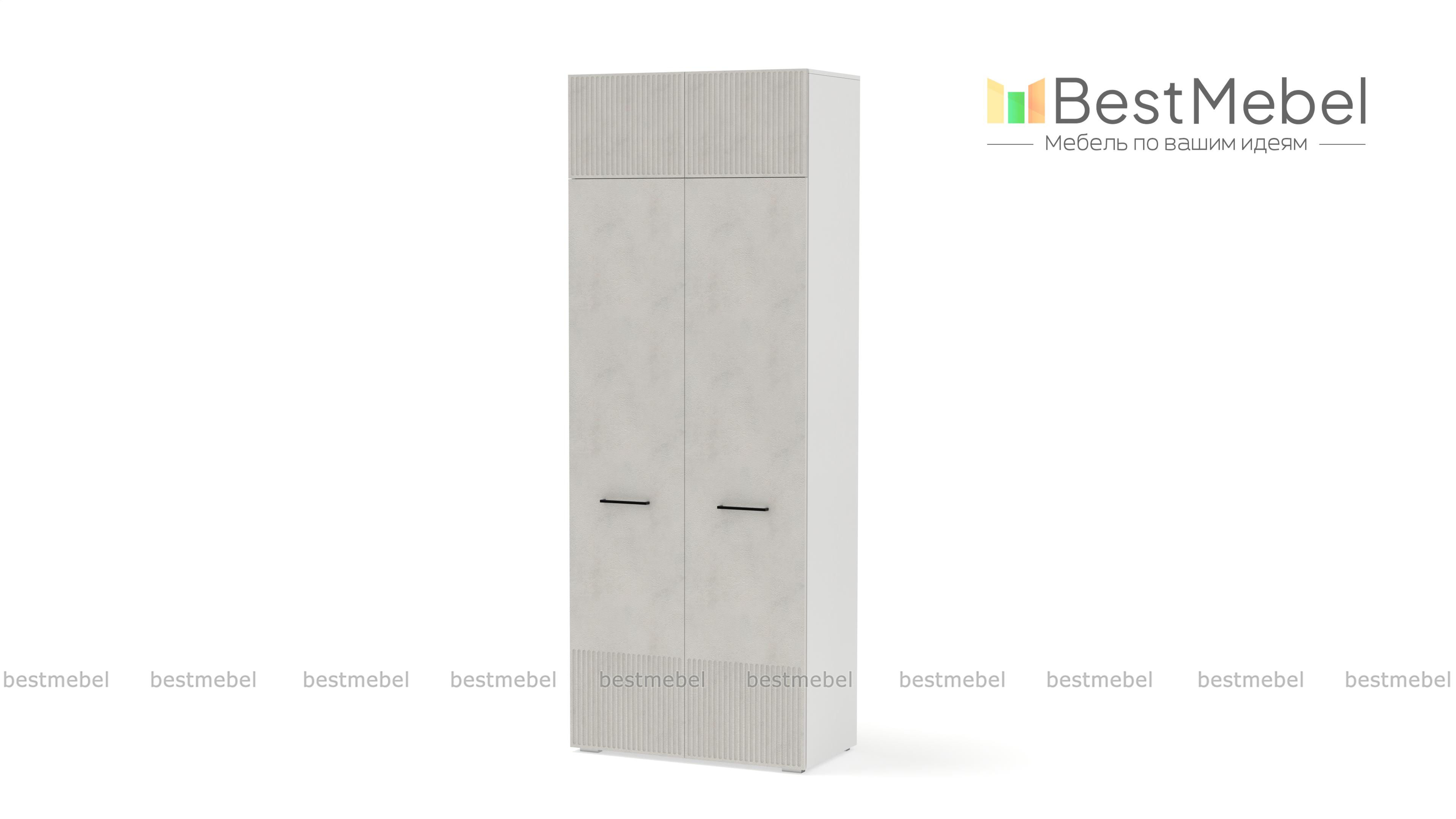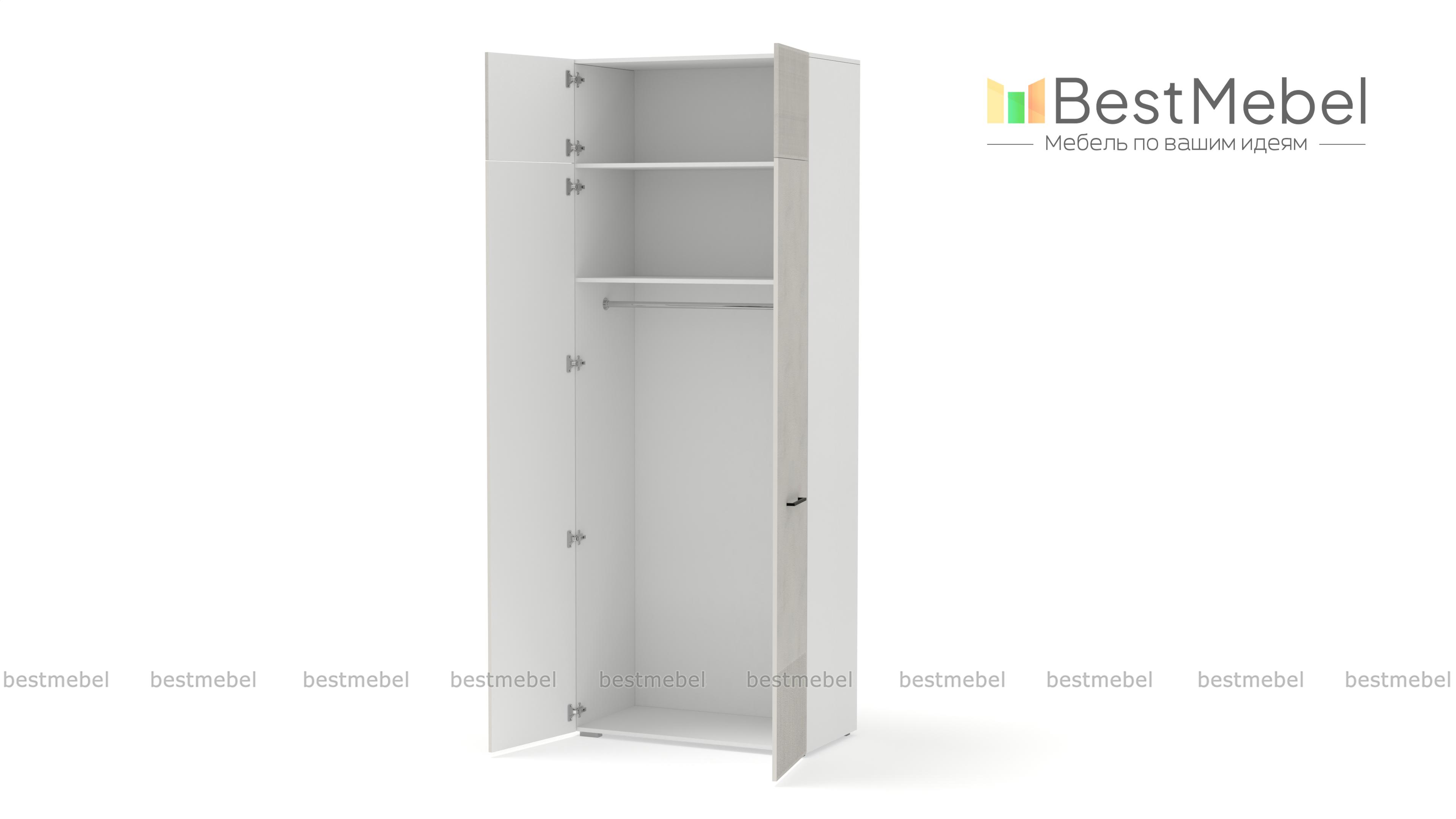 Шкаф распашной Декарт 8 BMS поможет быстро навести порядок в небольшой комнате. Двухдверный гардероб имеет базовое наполнение из штанги и верхней полки, а дополнительное пространство для хранения дает антресоль. Всегда актуально выглядит светлый фасад из МДФ с классической фрезерованной отделкой и контрастными поперечными скобами. Купить шкаф распашной Декарт 8 BMS в нужном размере и цветовой гамме приглашаем недорого на сайт нашего интернет-магазина.