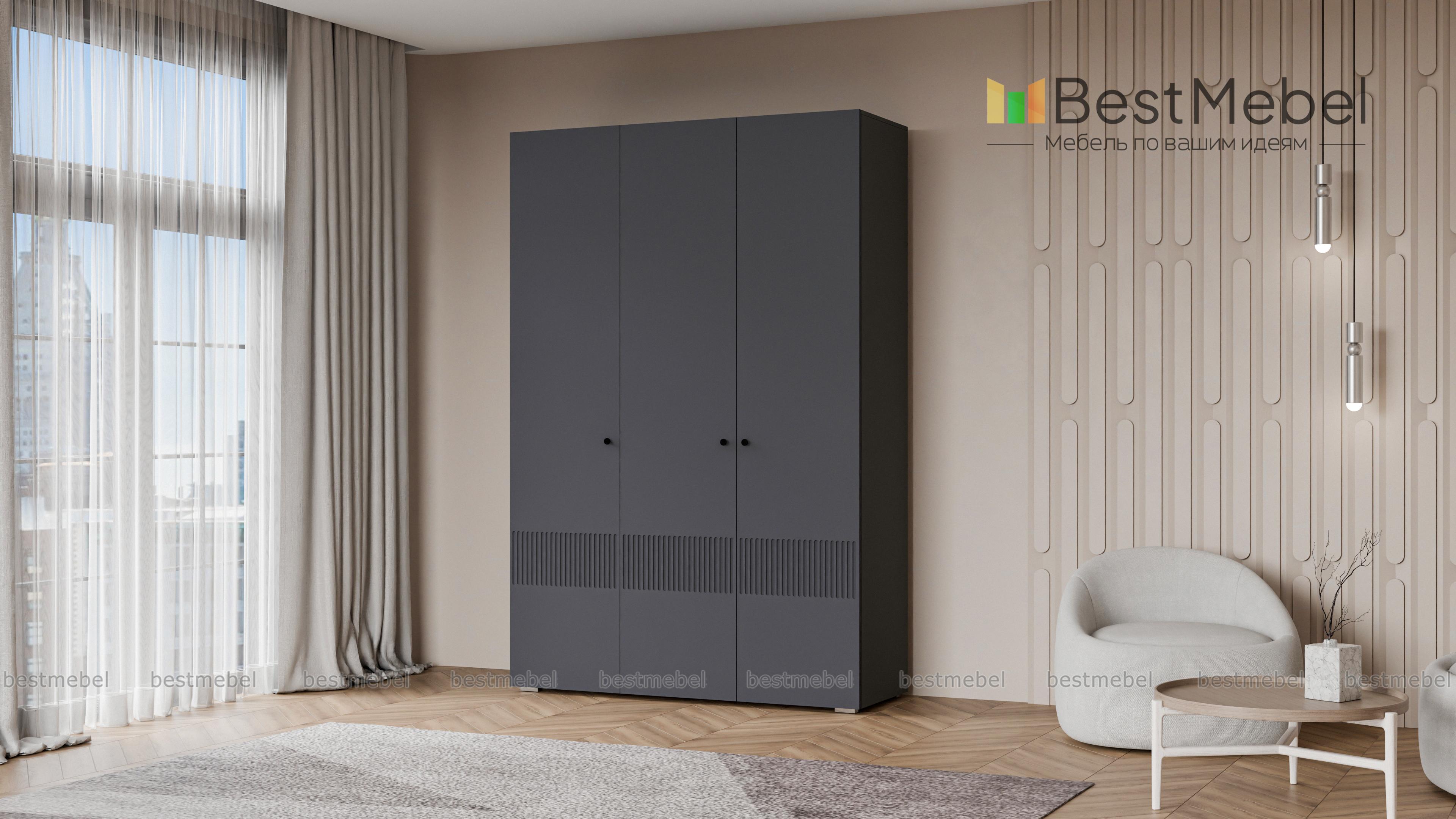 Шкаф распашной Джосс 3 BMS — компактный и стильный в двух актуальных оттенках. В отделке сплошного фасада, выполненного из устойчивой к повреждениям МДФ, использован оригинальный рельеф, дверцы легко открываются с помощью маленьких круглых ручек. Для разных вариантов хранения в трехдверной модели предусмотрены как штанга, так и секция с полками. Купить шкаф распашной Джосс 3 BMS с выбором размеров, цвета и фурнитуры вы сможете в нашем интернет-магазине.