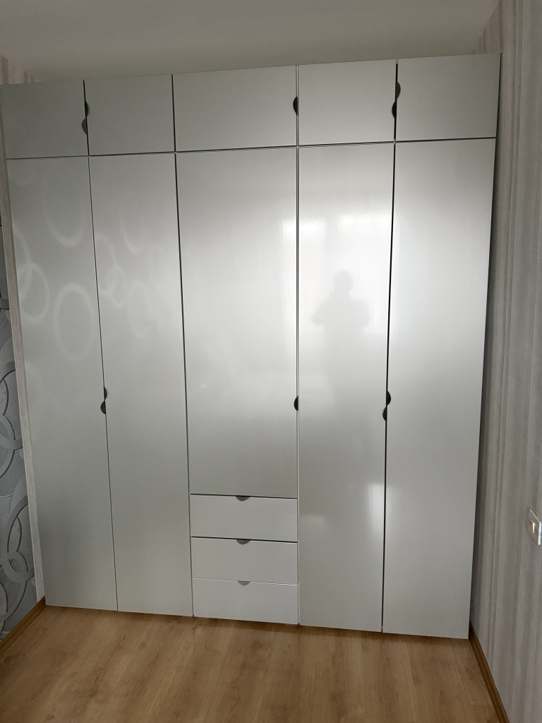 Я очень довольна шкафом, сохранила все стандартные характеристики, кроме размеров, выбрала из предложенных. Долго искала шкаф с внутренним наполнением именно с ящиками, двухуровневыми перекладинами, это большая редкость даже в best mebel, это единственный вариант и мне он подошёл идеально! Спасибо!Сделали очень быстро, это огромное преимущество, был небольшой скол, но я закрыла на это глаза.