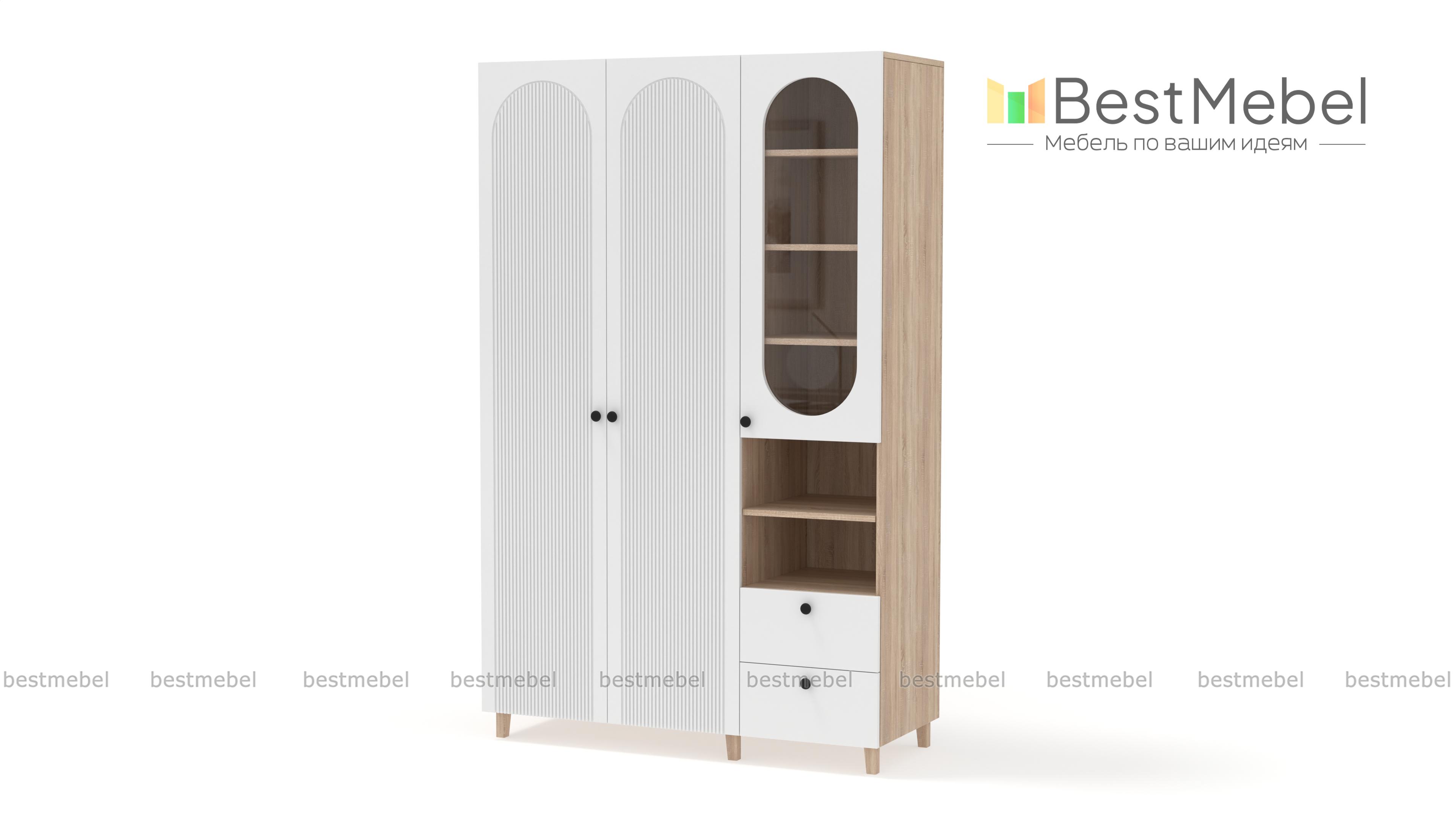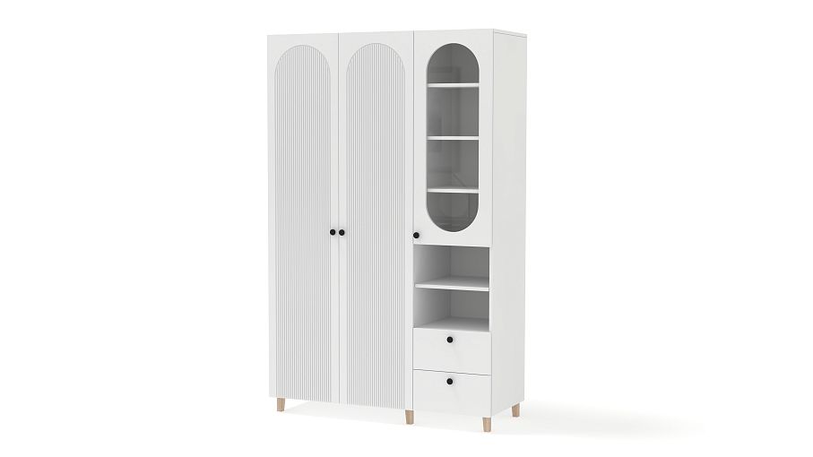 Шкаф распашной Рене 12 BMS обеспечит разные варианты хранения благодаря функциональной конструкции. Слева располагается одежная штанга за распашными дверцами, а справа — застекленные полки, ниши и пара выдвижных ящиков. Высокие ножки добавляют этой элегантной фрезерованной модели в светлом оформлении легкости и «воздушности». Купить шкаф распашной Рене 12 BMS вы сможете недорого на сайте нашего интернет-магазина, подобрав размеры, цвет и фурнитуру.