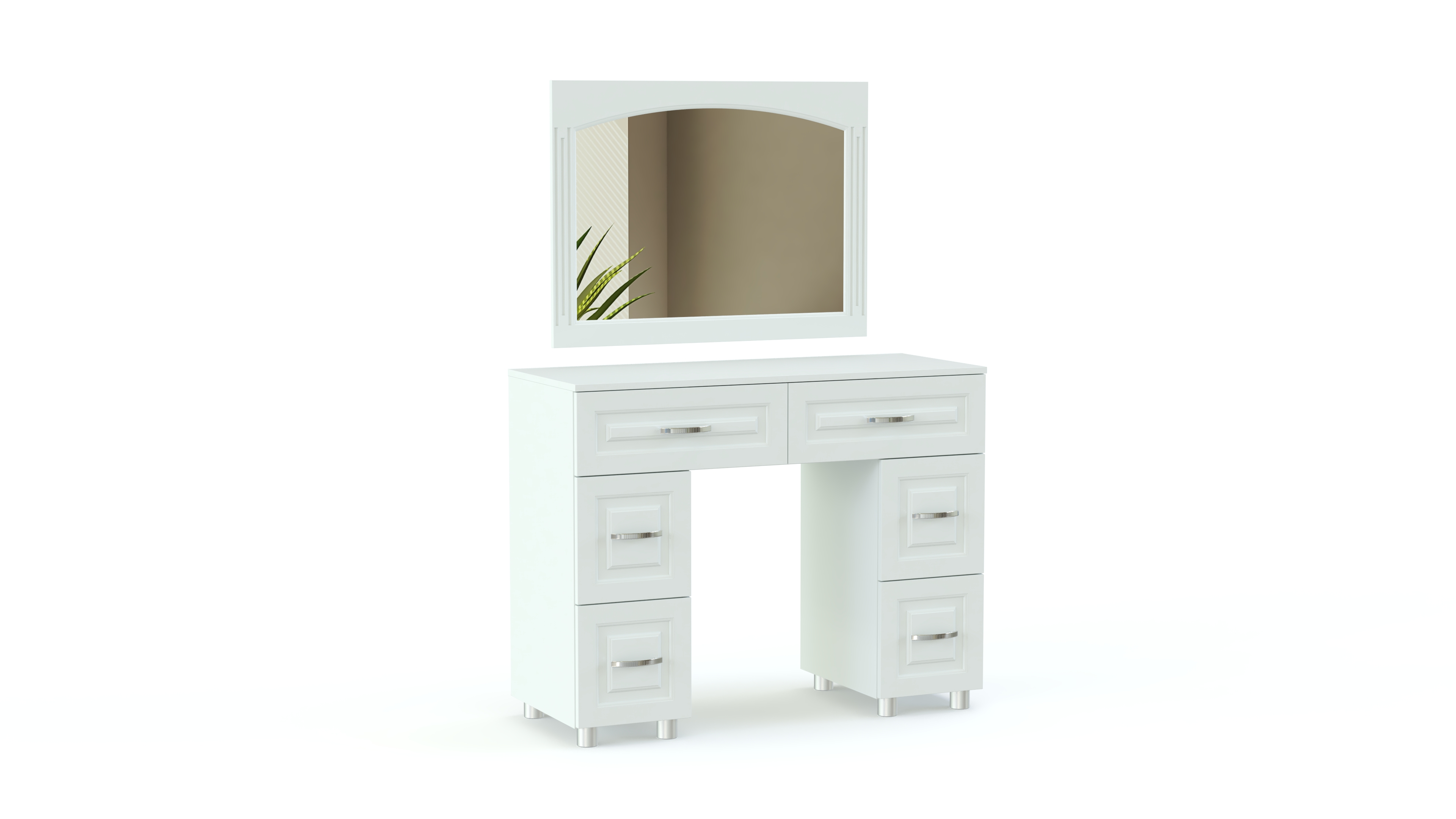 Элегантный классический комплект для спальни Элизабет Композиция 3 BMS, выполненный в светлых тонах, выглядит особенно легко и атмосферно и станет в интерьере вашего дома стильным акцентом. В гарнитур входят платяной шкаф с изящными полукруглыми зеркалами, туалетный столик с навесным широким зеркалом, удобная двуспальная кровать и две прикроватные тумбы. Фасады мебели декорированы металлическими, под позолоту, оригинальными ручками, придающими всему комплекту винтажный оттенок.