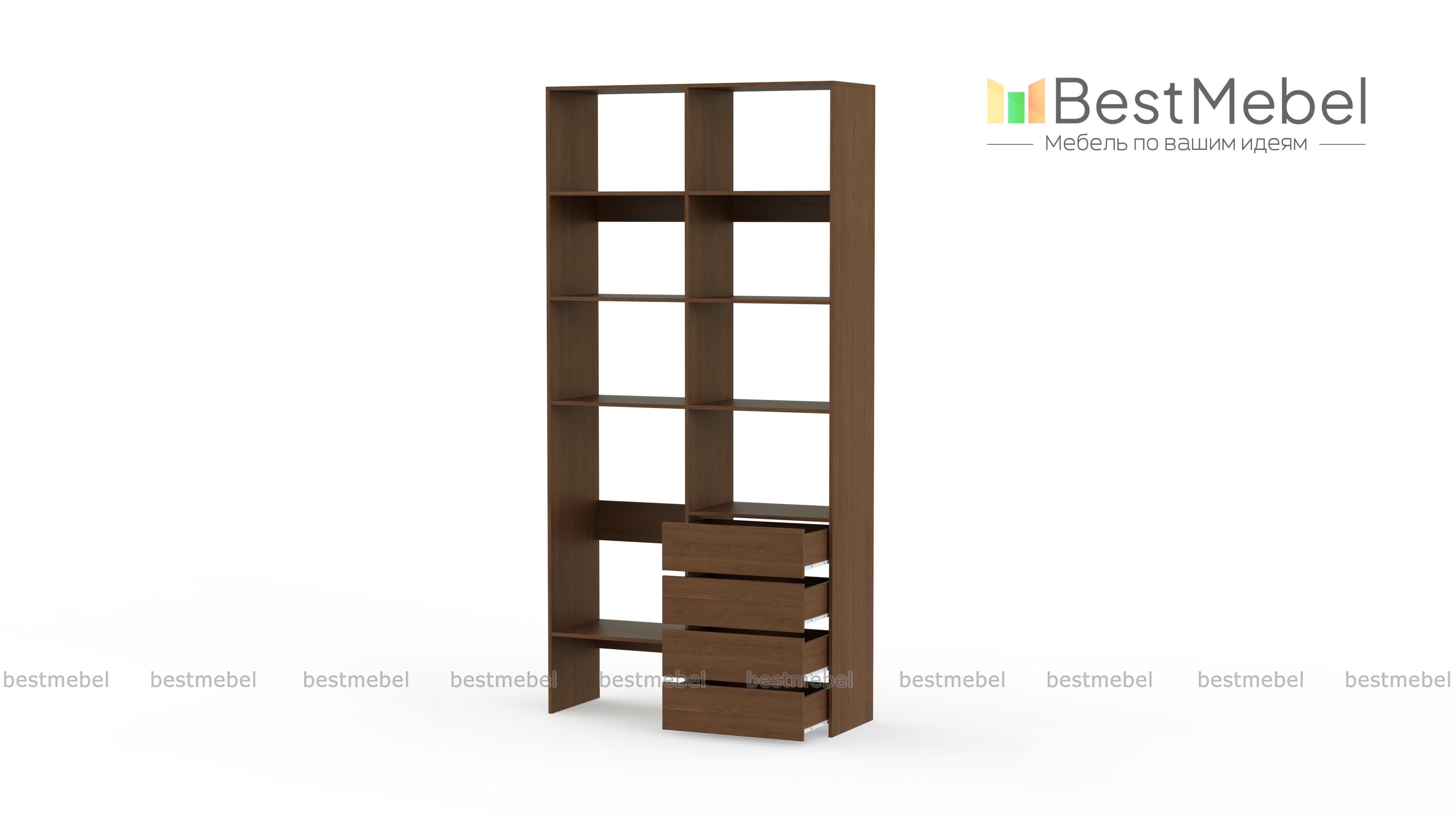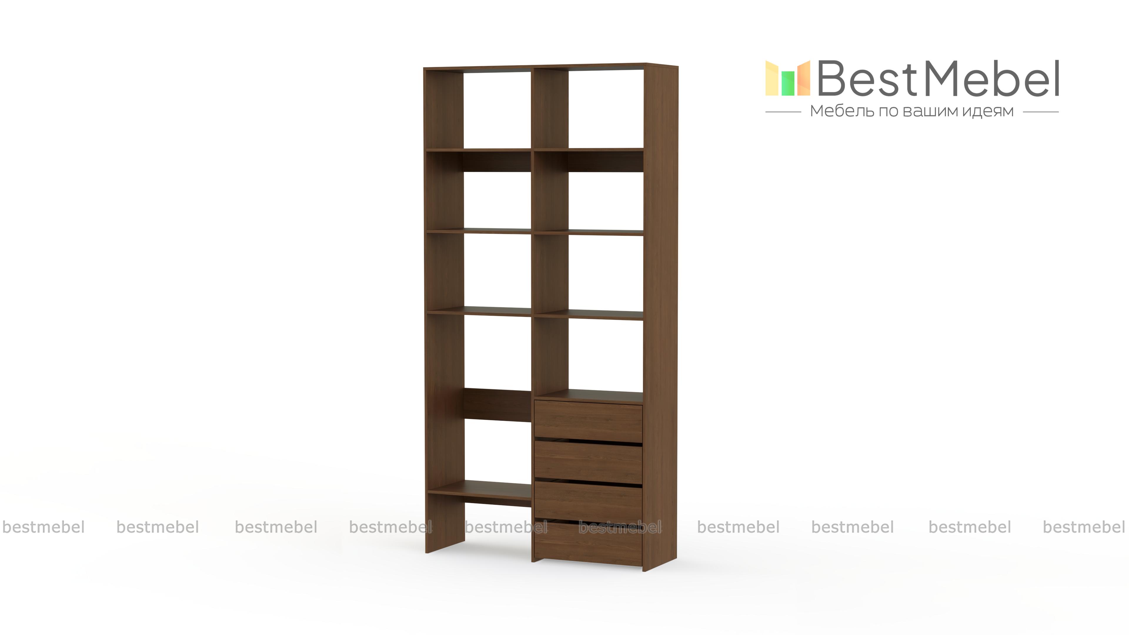 Стеллаж для одежды Мирта 4 BMS – практичное решение для гардеробной, детской комнаты или спальни. Лаконичный современный дизайн сочетается с надежной конструкцией из устойчивой к повреждениям ламинированной плиты. Открытые секции разной высоты помогут вам разместить как небольшие, так и габаритные вещи, а для мелочей предусмотрены четыре выдвижных ящика. Купить стеллаж для одежды Мирта 4 BMS приглашаем в наш интернет-магазин с выбором размеров и цвета по каталогу.