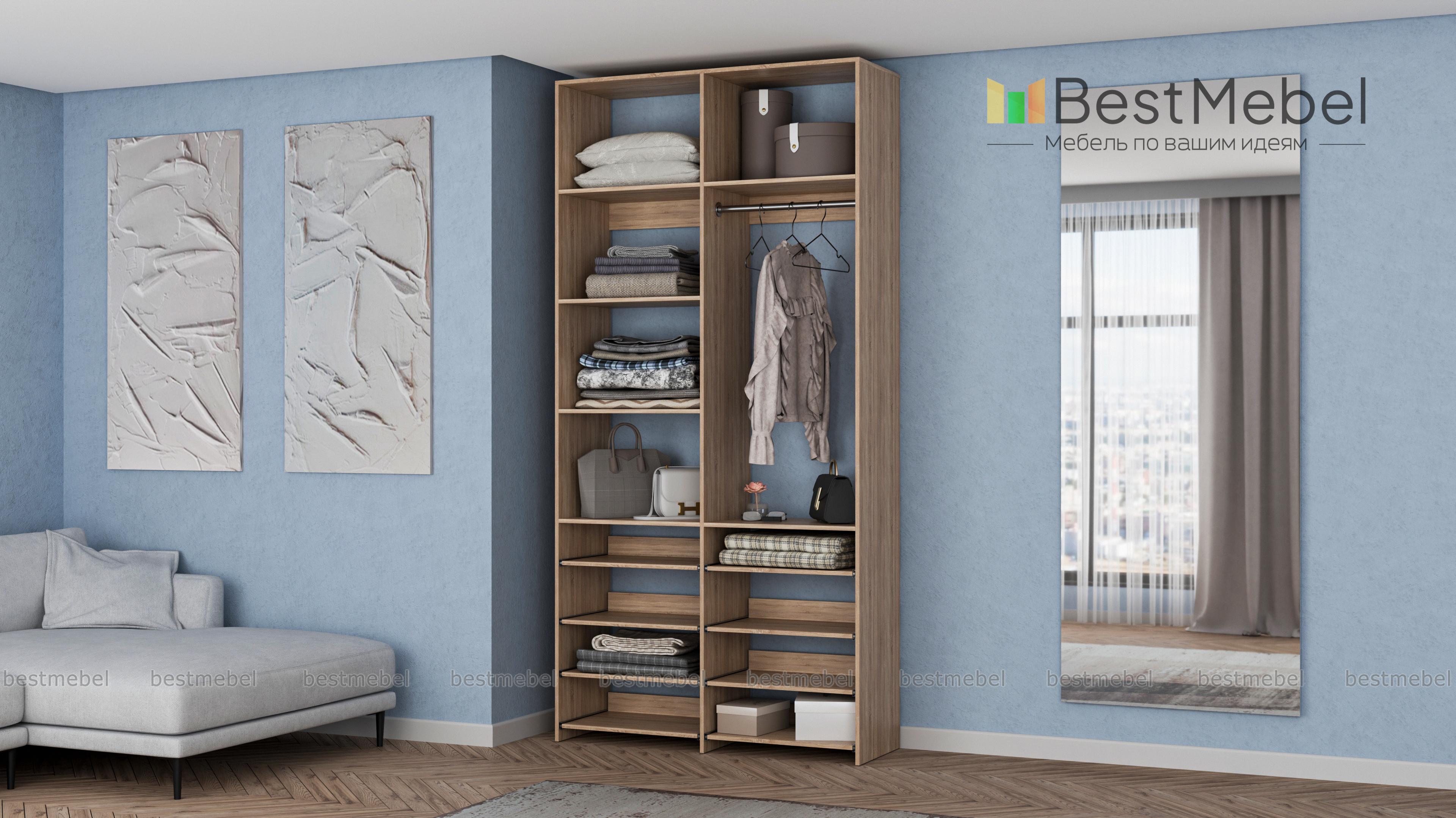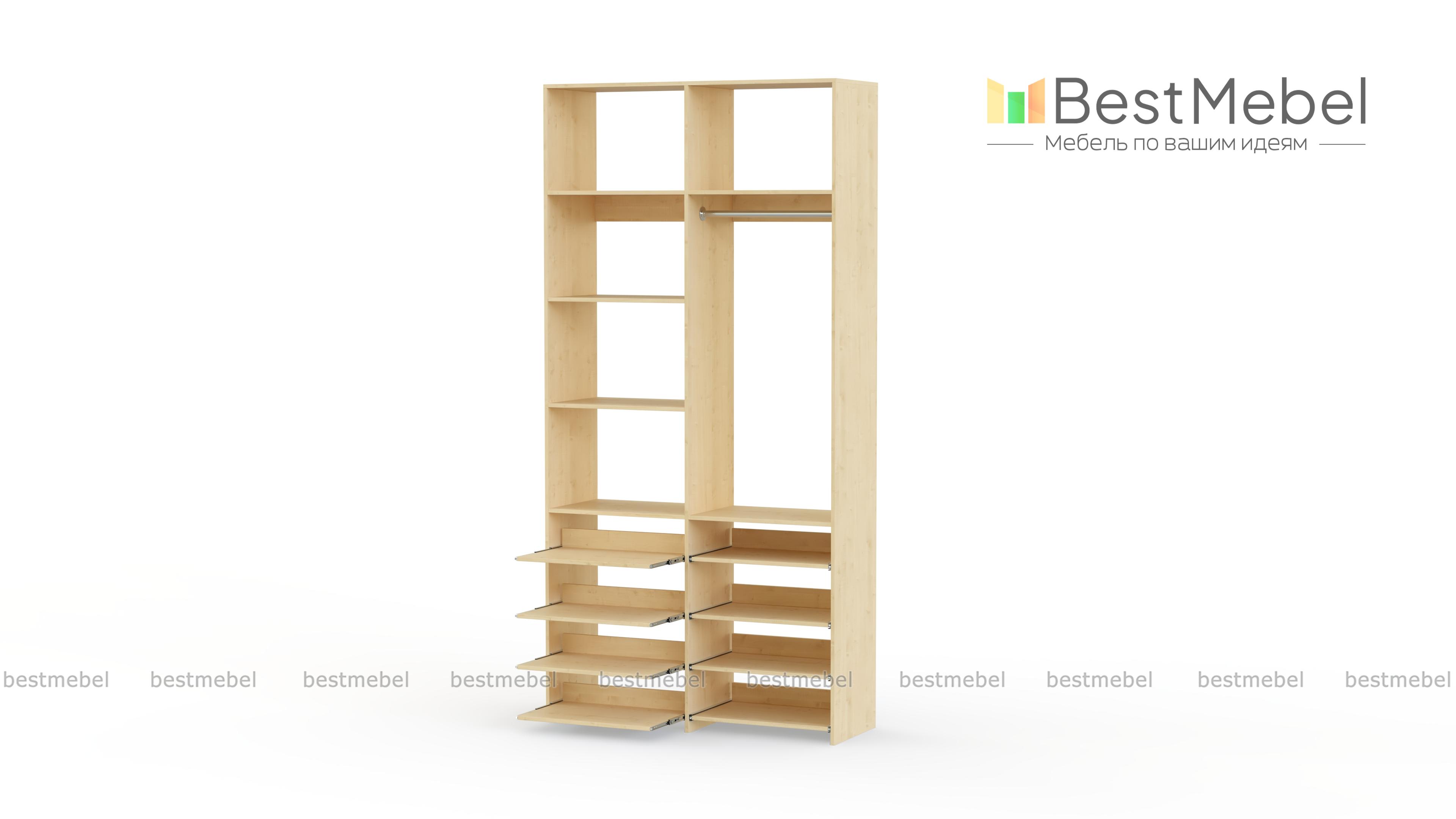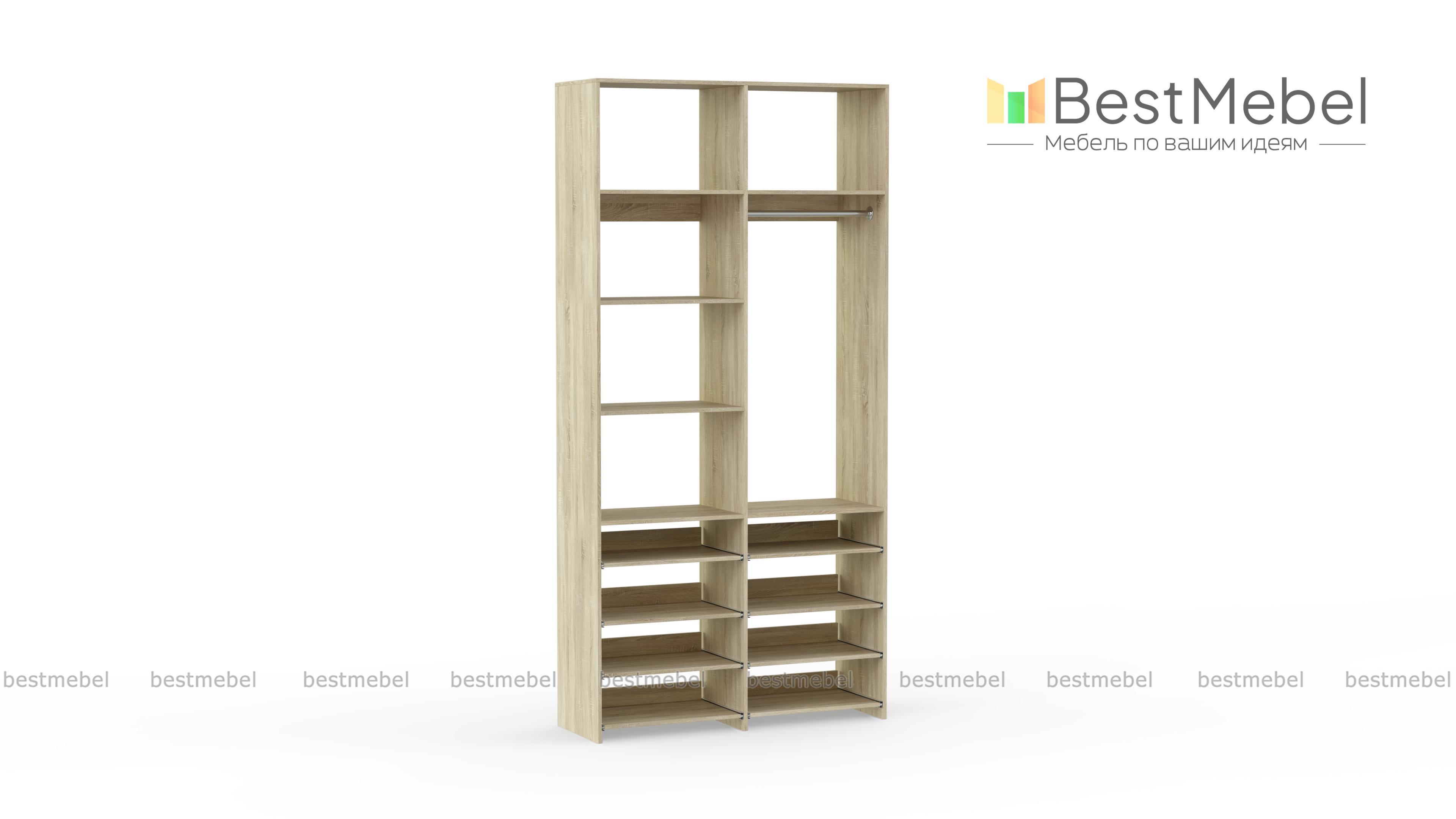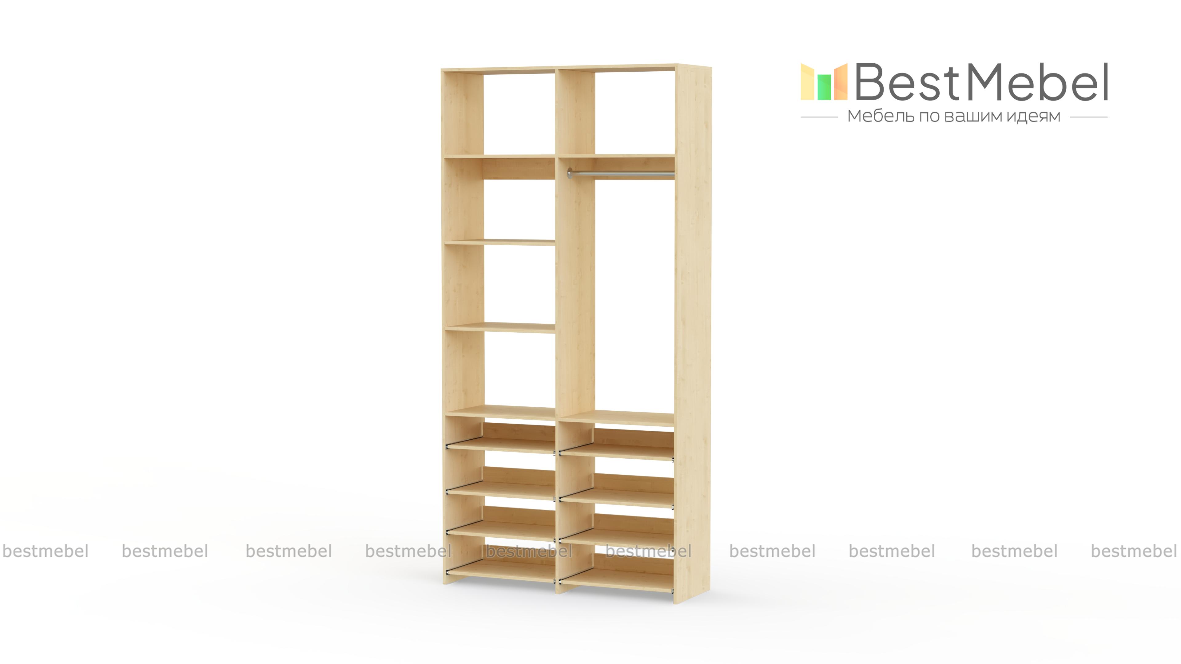 Стеллаж для одежды Мирта 83 BMS прекрасно подходит для маленьких комнат и комбинированного хранения. Конфигурация со штангой и полками — стационарными и выдвижными, оптимальна для плечиков с одеждой, обуви и вещей в сложенной виде. Универсальный дизайн стеллажа в нейтральном древесном оттенке гармонирует с самыми разными по стилю интерьерами. Купить стеллаж для одежды Мирта 83 BMS, изготовленный по индивидуальным размерам, приглашаем в наш интернет-магазин.