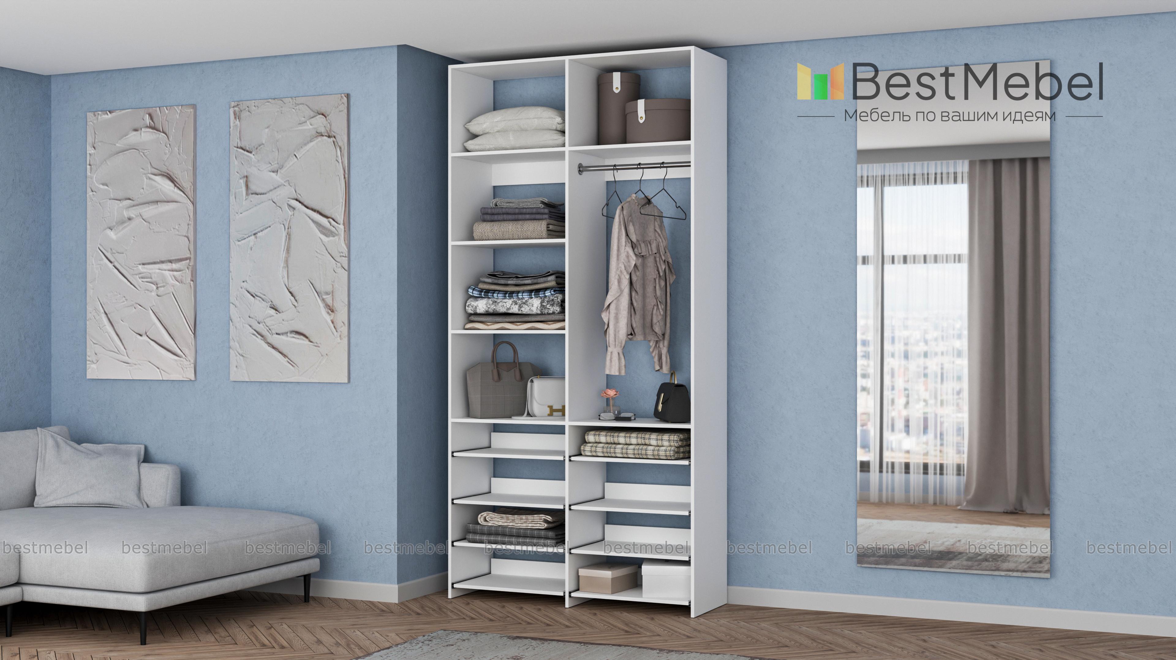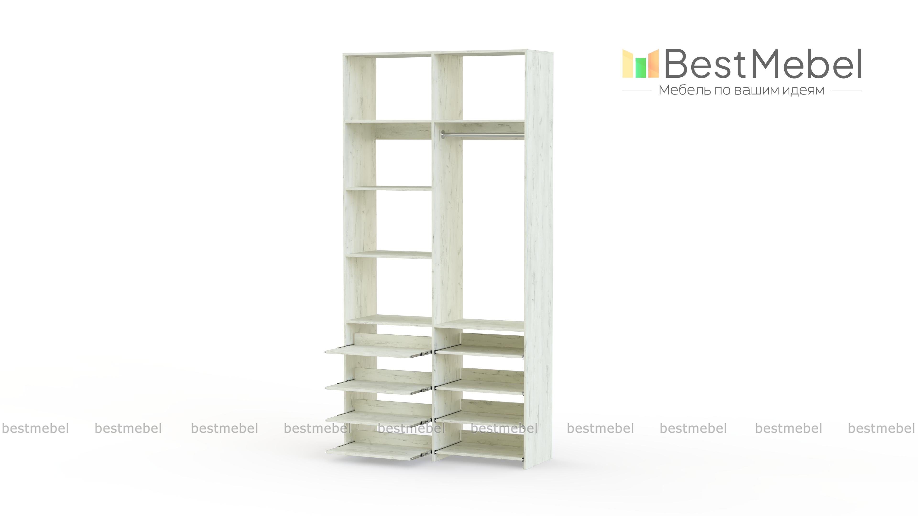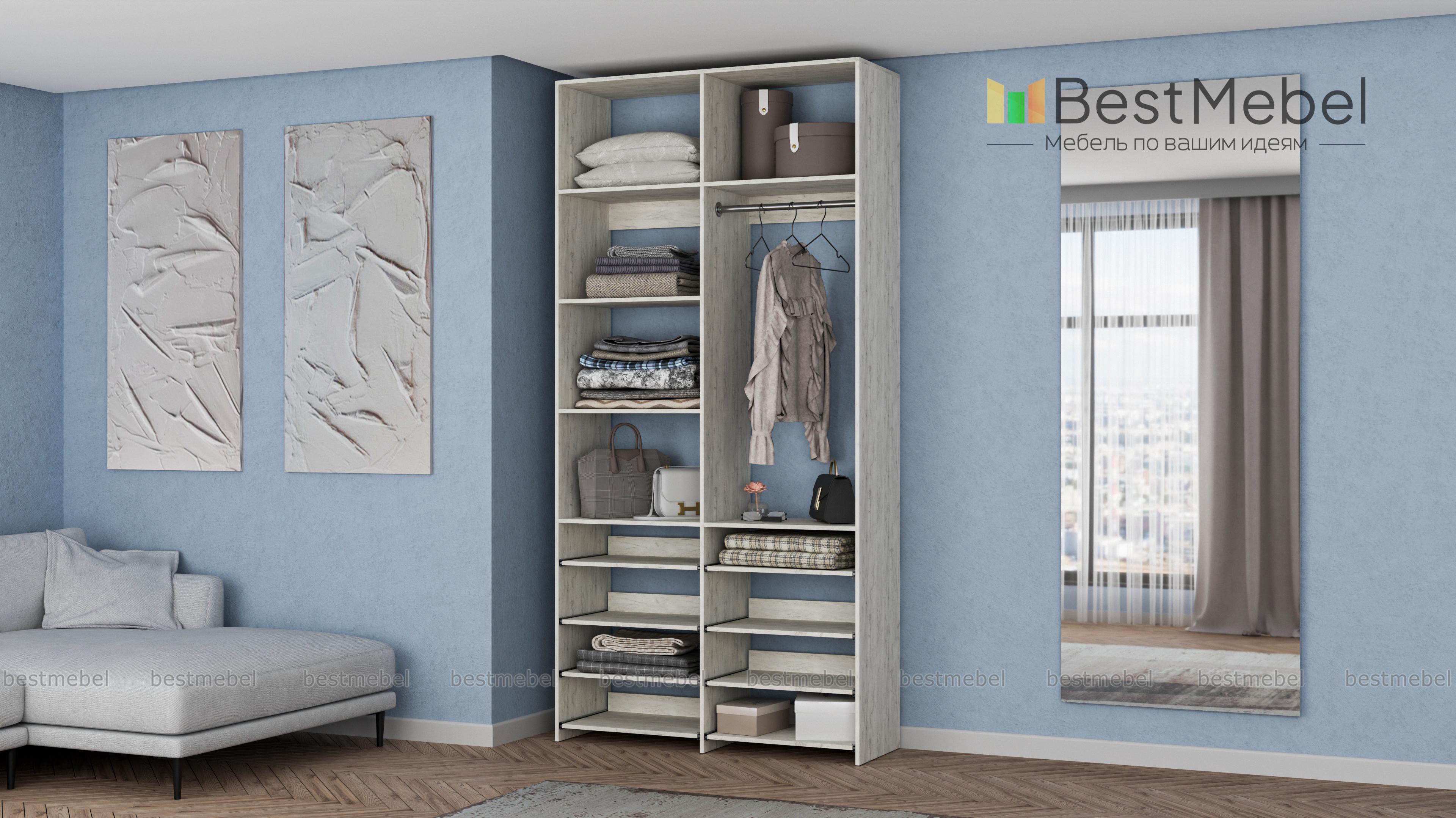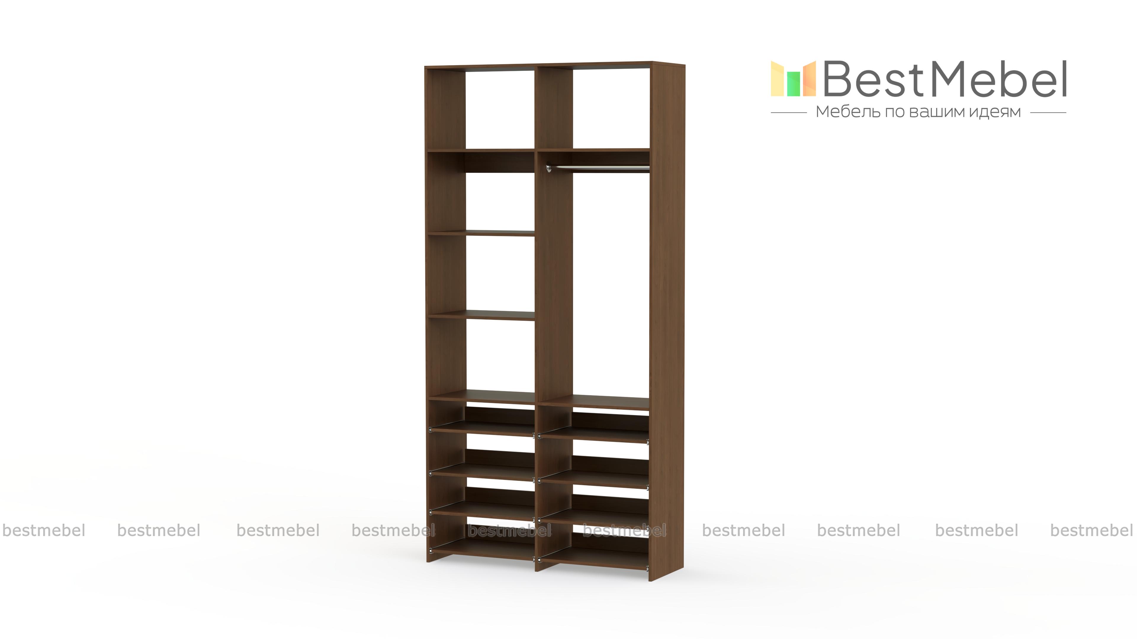 Стеллаж для одежды Мирта 83 BMS прекрасно подходит для маленьких комнат и комбинированного хранения. Конфигурация со штангой и полками — стационарными и выдвижными, оптимальна для плечиков с одеждой, обуви и вещей в сложенной виде. Универсальный дизайн стеллажа в нейтральном древесном оттенке гармонирует с самыми разными по стилю интерьерами. Купить стеллаж для одежды Мирта 83 BMS, изготовленный по индивидуальным размерам, приглашаем в наш интернет-магазин.