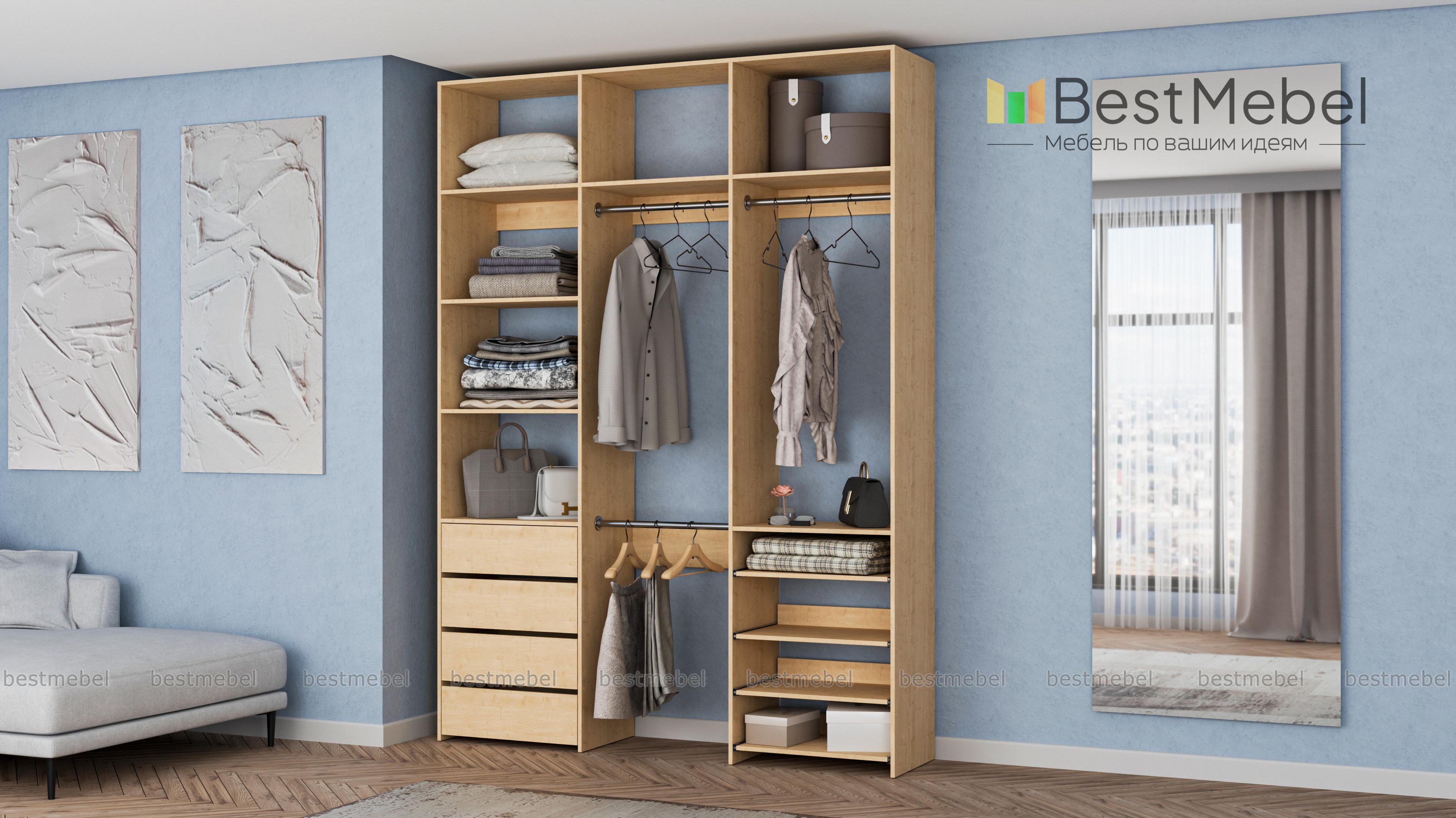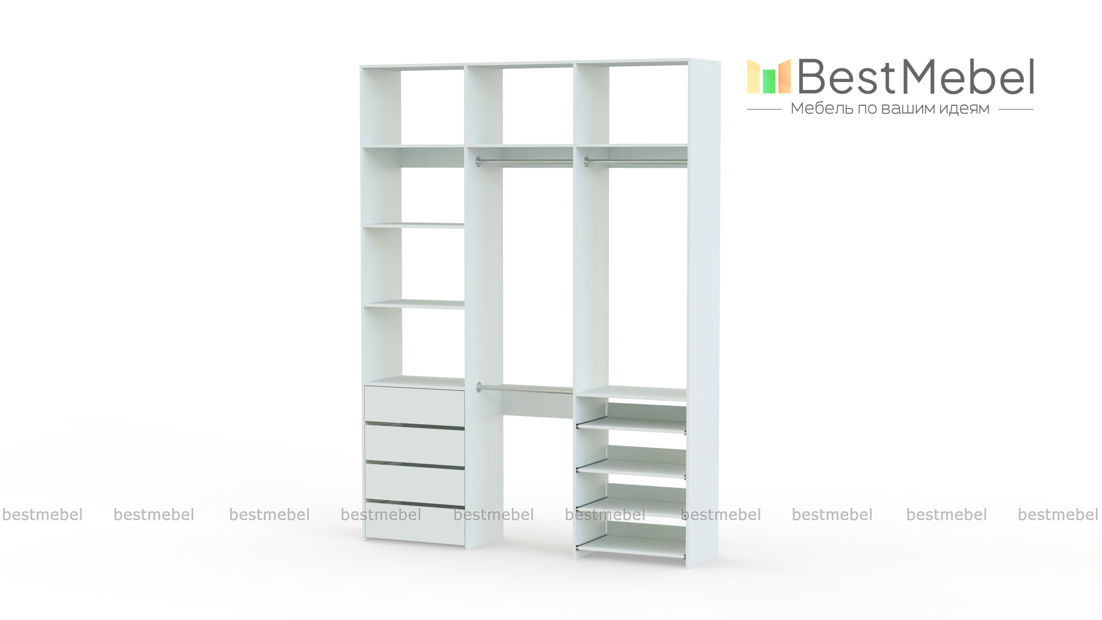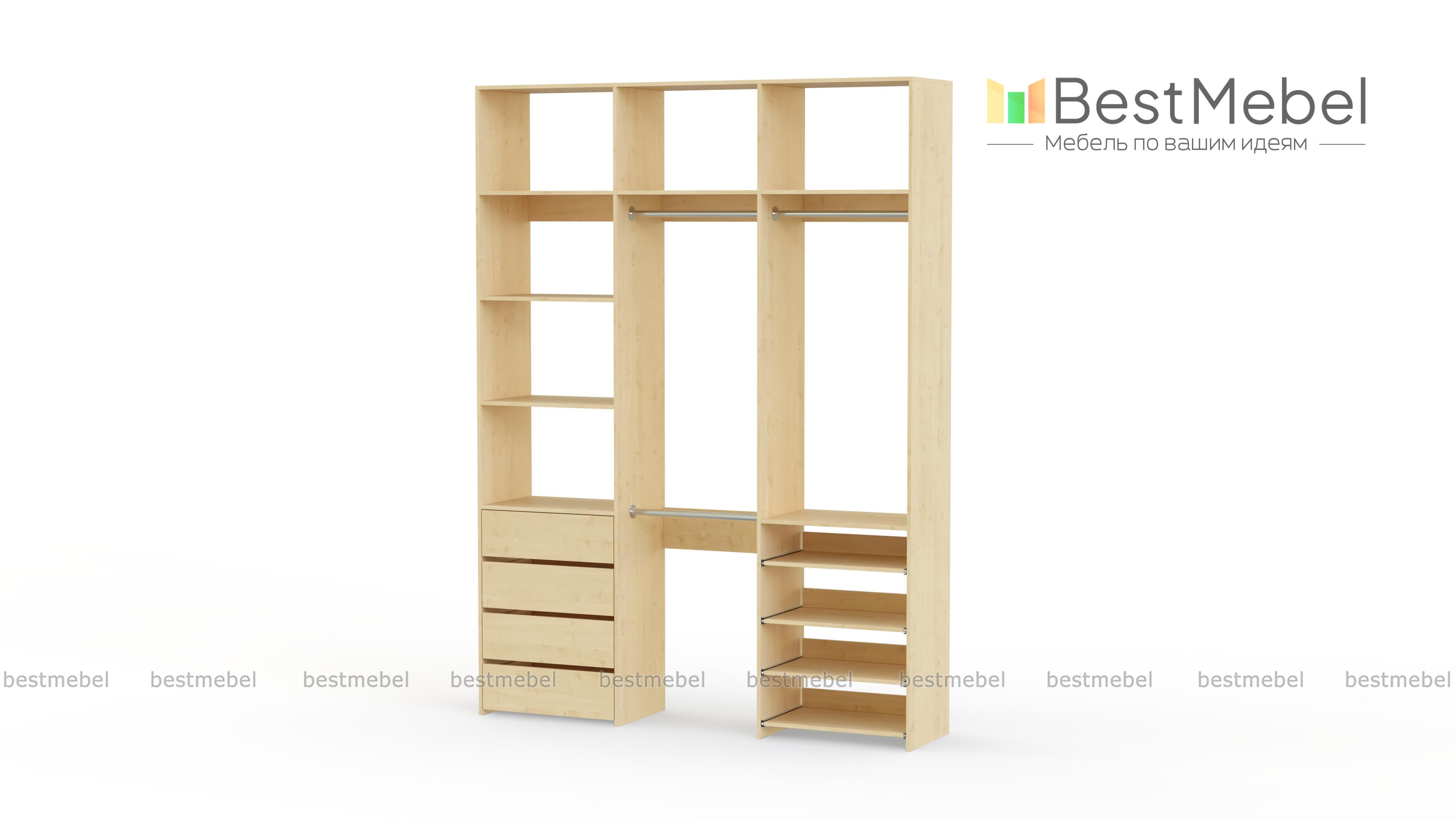 Стеллаж для одежды Мирта 88 BMS имеет открытую легкую конструкцию и универсальный дизайн. Комбинация трех штанг, бельевых отделений, ряда выдвижных ящиков и полок эффективно использует пространство вашей прихожей или гардеробной. Изготовленный из ламинированной ДСП высокого качества, стеллаж отличается прочностью и широким выбором цветовых решений. Купить стеллаж для одежды Мирта 88 BMS в гармонирующем с интерьером оттенке вы сможете на сайте нашего интернет-магазина.