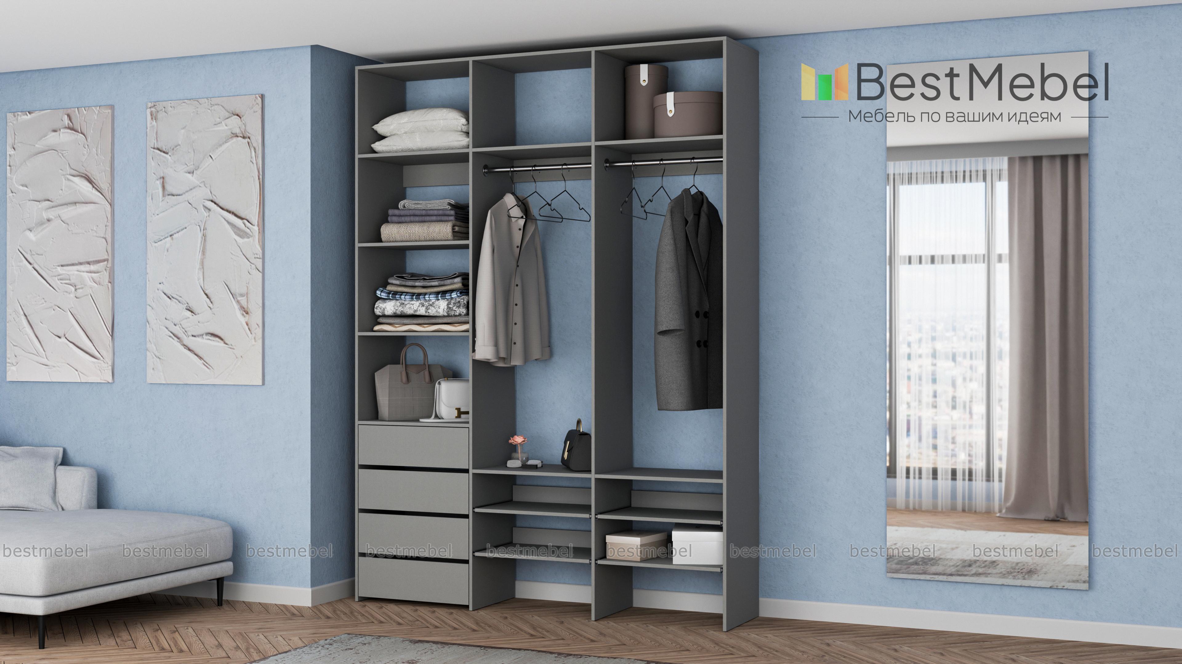 Стеллаж для одежды Мирта 99 BMS помогает сохранить порядок в вашей прихожей или гардеробной. Открытая конструкция укомплектована двумя одежными штангами, бельевыми и выдвижными полками, а также четырьмя ящиками для мелочей. Материал изготовления — ламинированная плита древесного оттенка, которая выдерживает большие нагрузки. Купить стеллаж для одежды Мирта 99 BMS в необходимом вам размере и цвете вы сможете купить на сайте нашего интернет-магазина.