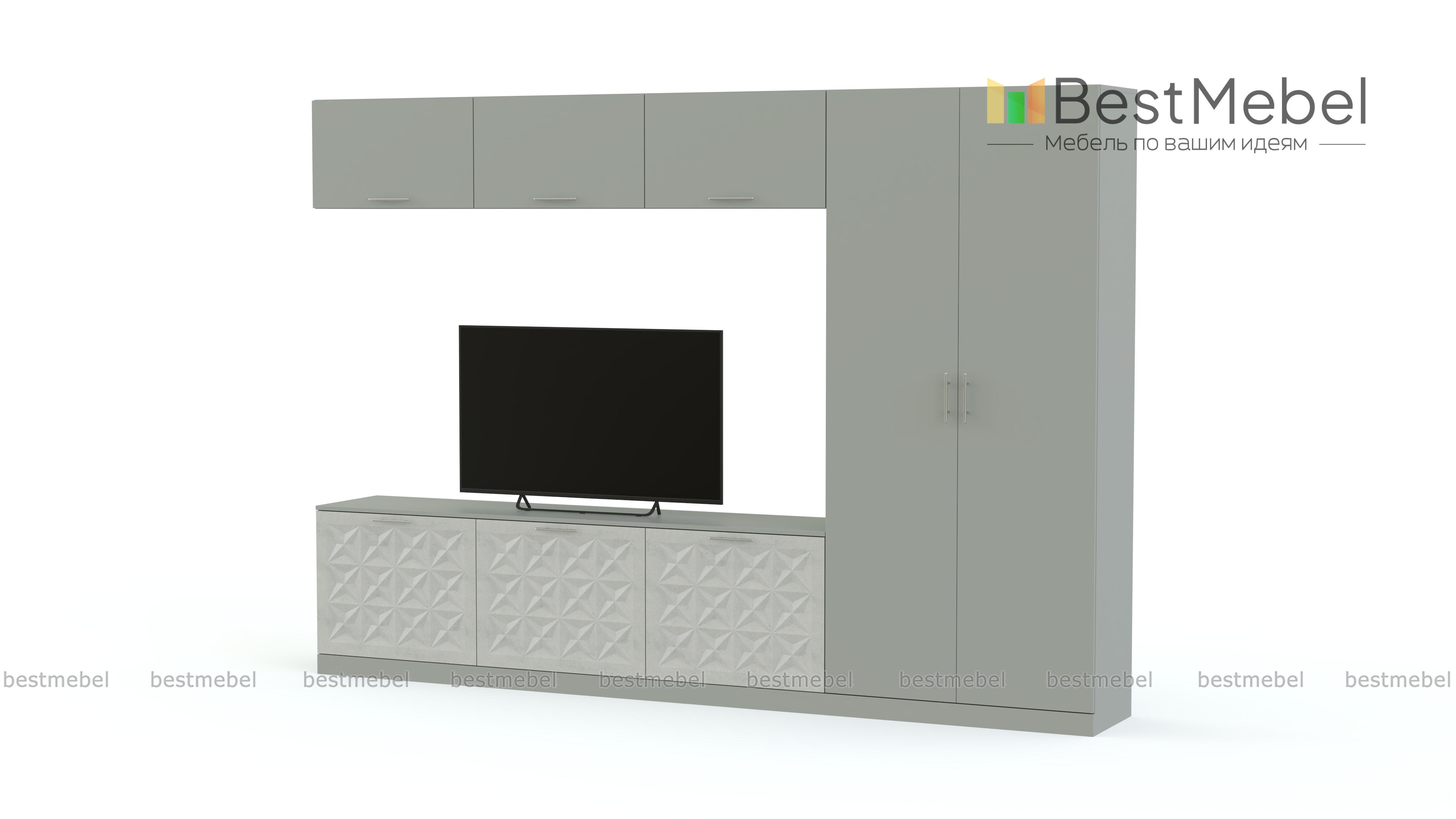 Стенка Вельвет 7 BMS понравится тем, кто предпочитает лаконичные формы и функциональность современного стиля. Простой по форме, комплект поможет эффектно оформить зону ТВ и разместить одежду, предметы декора и многое другое. Модель оборудована широкой низкой тумбой под ТВ, навесными секциями с откидными дверцами и платяным шкафом. Яркий оттенок фасадов с рельефным рисунком интересно сочетается с теплыми древесными тонами. Купить стенку Вельвет 7 BMS недорого приглашаем в наш интернет-магазин.