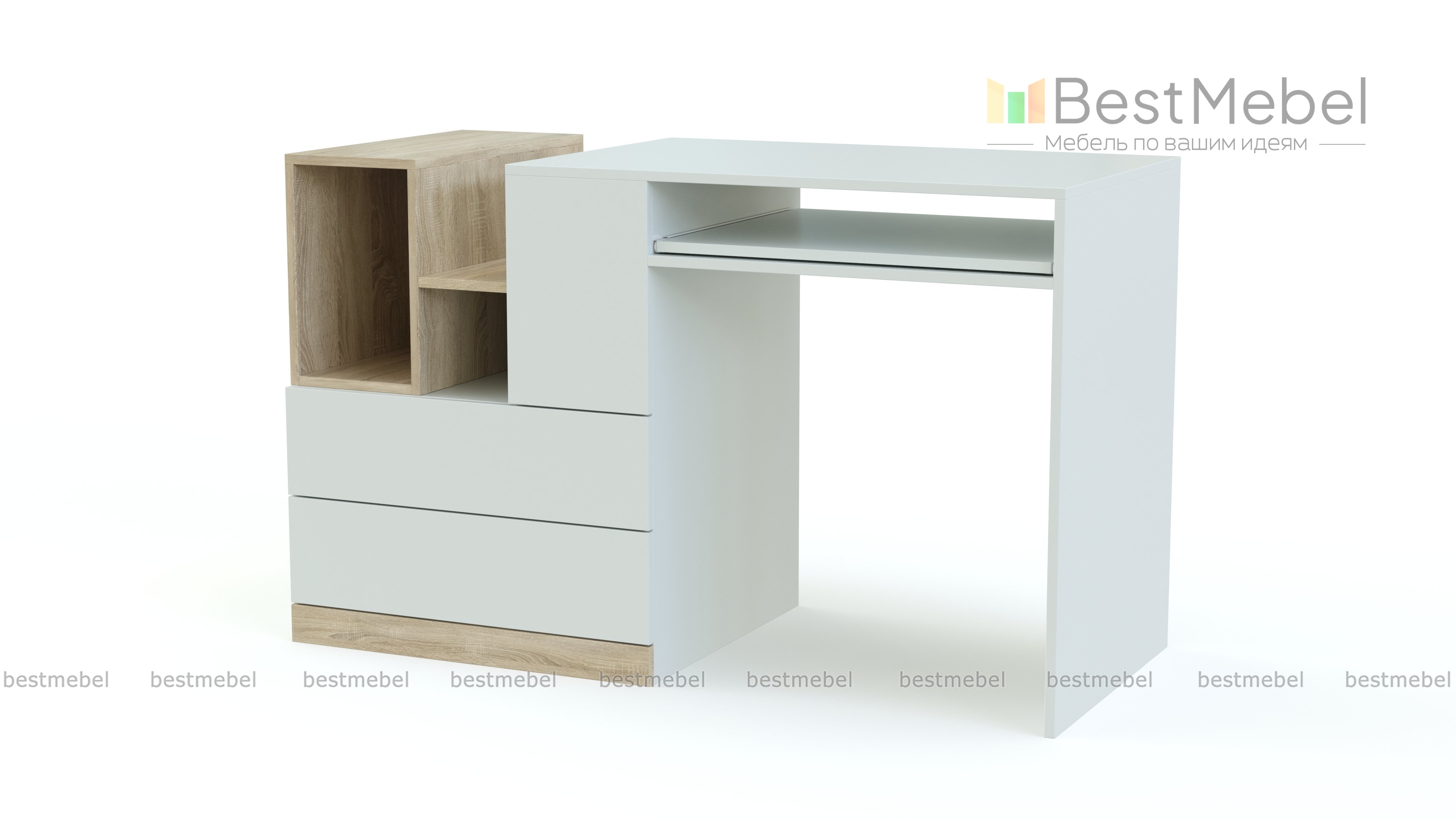 Модный стол компьютерный Gerbor Моби BMS имеет компактные размеры и может использоваться для различных целей, благодаря универсальности. Он обладает всеми стандартными опциями, присущими данной категории мебели: просторной столешницей, снабженной выкатывающейся полочкой для клавиатуры и мышки, тумбой с выдвижными ящиками, над которой выполнена надстройка в виде небольшой ниши и полочки, на них можно разместить различную канцелярскую мелочовку. Белый цвет изделия очень украшает его и позволяет использовать в интерьере любого стиля. Заказать стильное изделие по самой выгодной на сегодняшний день цене приглашаем на нашем сайте. Мы гарантируем высокое качество изготовления и быструю доставку по указанному адресу.