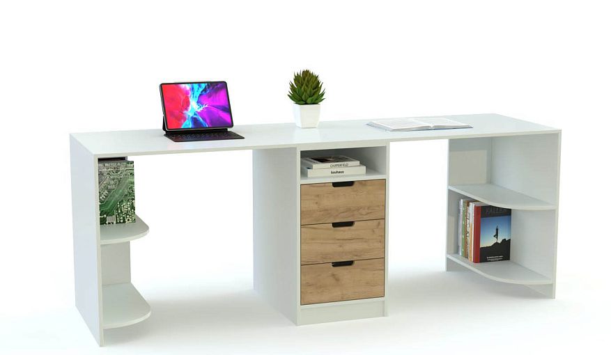Письменный стол для двоих детей Джуни BMS олицетворяет современный подход к организации пространства детской. Комбинированная модель выполнена из экологичных материалов и отличается эргономичным и ярким дизайном. Композиция объединила просторную столешницу, удобную для учебы и творческих занятий сразу двоих детей, тумбу с нишей и выдвижными ящиками и скругленные открытые полки в нижней части. Купить письменный стол для двоих детей Джуни BMS и эффективно использовать возможности планировки вам поможет наш интернет-магазин.