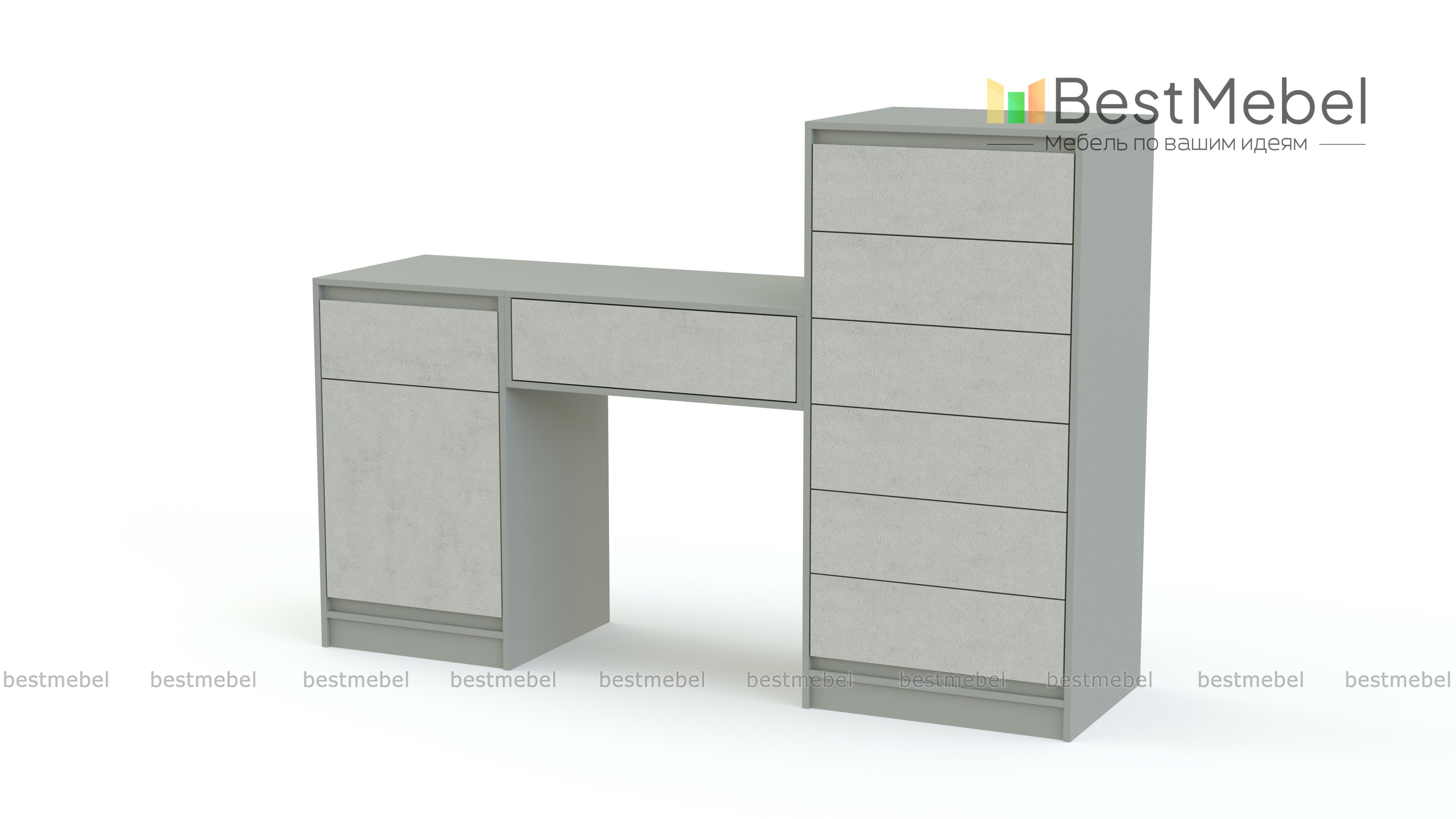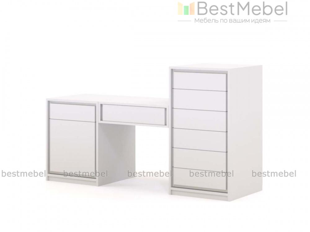 Туалетный стол Кэмел 14 BMS – практичное решение для элегантной спальни в современном классическом стиле. Модель, выполненная в белом цвете, отличается модным минималистичным дизайном и высокой функциональностью. Столик дополнен удобной системой хранения из двух тумб – низкой с ящиком и распашным отделением и высокой с шестью выдвижными ящиками для уходовых средств, аксессуаров и множества мелочей. Купить туалетный стол Кэмел 14 BMS по выгодной цене вы сможете в нашем интернет-магазине.