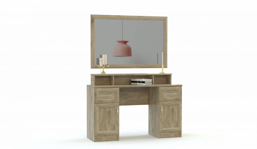 Туалетный столик Арина 3 BMS станет прекрасным дополнением классического спального интерьера. Двухтумбовая модель с надстройкой оборудована выдвижными ящиками, распашными отделениями и нишами для хранения под рукой уходовых средств, косметики и аксессуаров. Стол с рамочными фасадами в крафтовых тонах эффектно смотрится в комплекте с навесным зеркалом аналогичного дизайна. Купить туалетный столик Арина 3 BMS с возможностью изменения размеров приглашаем в наш интернет-магазин.