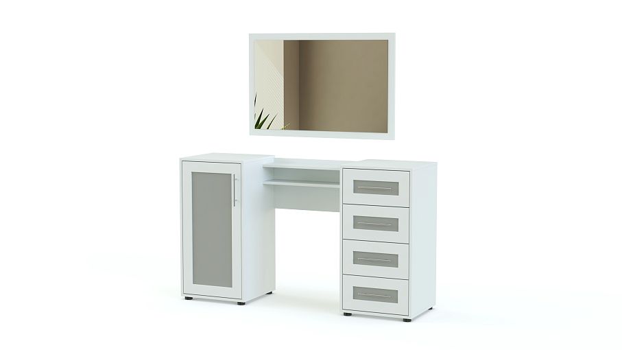 Классический комплект из туалетного столика и навесного зеркала. Этот традиционный вариант удобен возможностью самостоятельной регулировки высоты и ориентации зеркала. Отличает его и отменная вместительность, косметика, украшения и многое другое без труда разместится в выдвижных ящиках и на полках двух боковых тумб, углы которых безопасно скруглены. Дизайн туалетного столика Токио BMS порадует любительниц классики, спокойных благородных расцветок и декорированных фасадов.