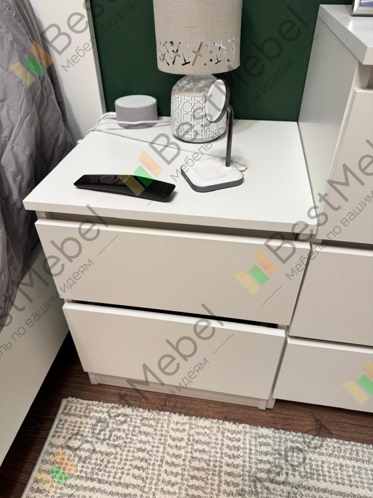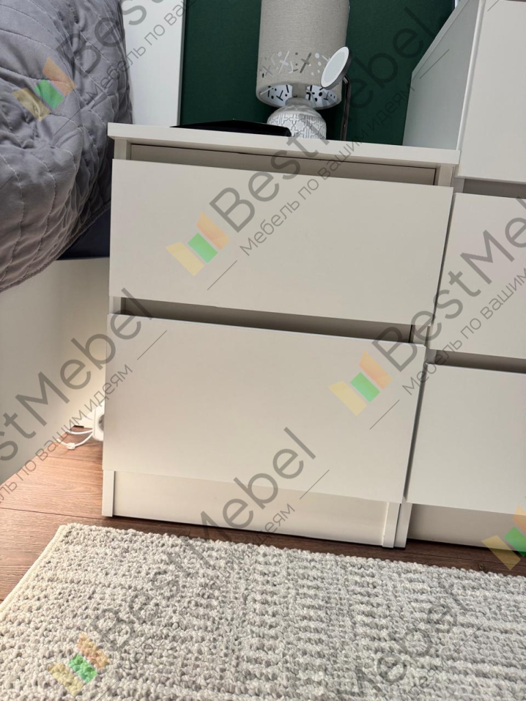 Заказывалась тумба прикроватная Куллен Kullen 3. Собралась без проблем, все устраивает. Заказ 00000207705, 00000207706. Тумбы заказывались под мои размеры, так как не смог найти в мебельных магазинах подходящих габаритов. После сборки думал будут проблемы с наклейками на каждой детали - отклеил без проблем и следа не осталось. Тумбами доволен.